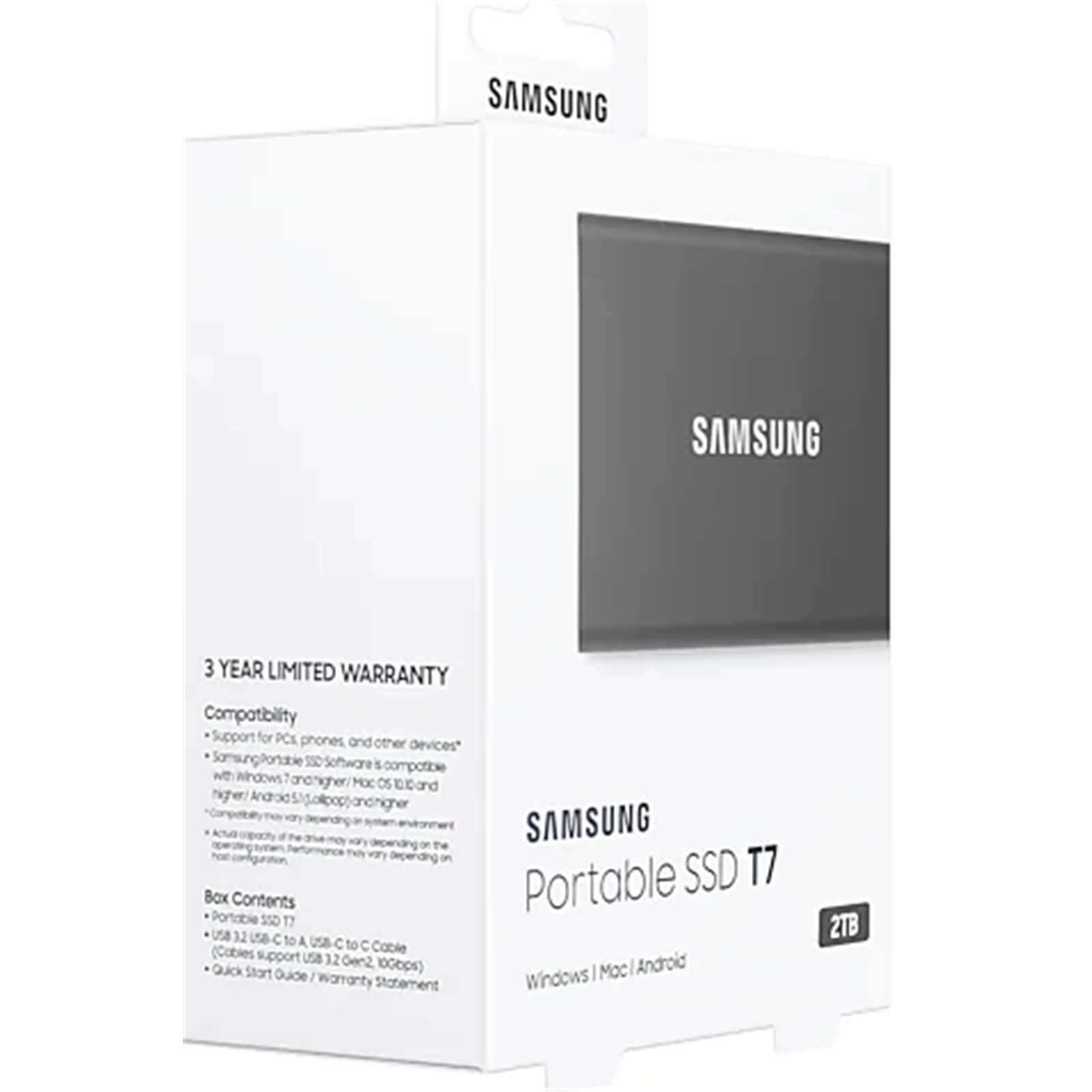Access your files anytime, anywhere. The T7 is compatible with PC, Mac, Android devices, gaming consoles, and more. Included in the box are USB Type C-to-C and Type C-to-A cables for added convenience.