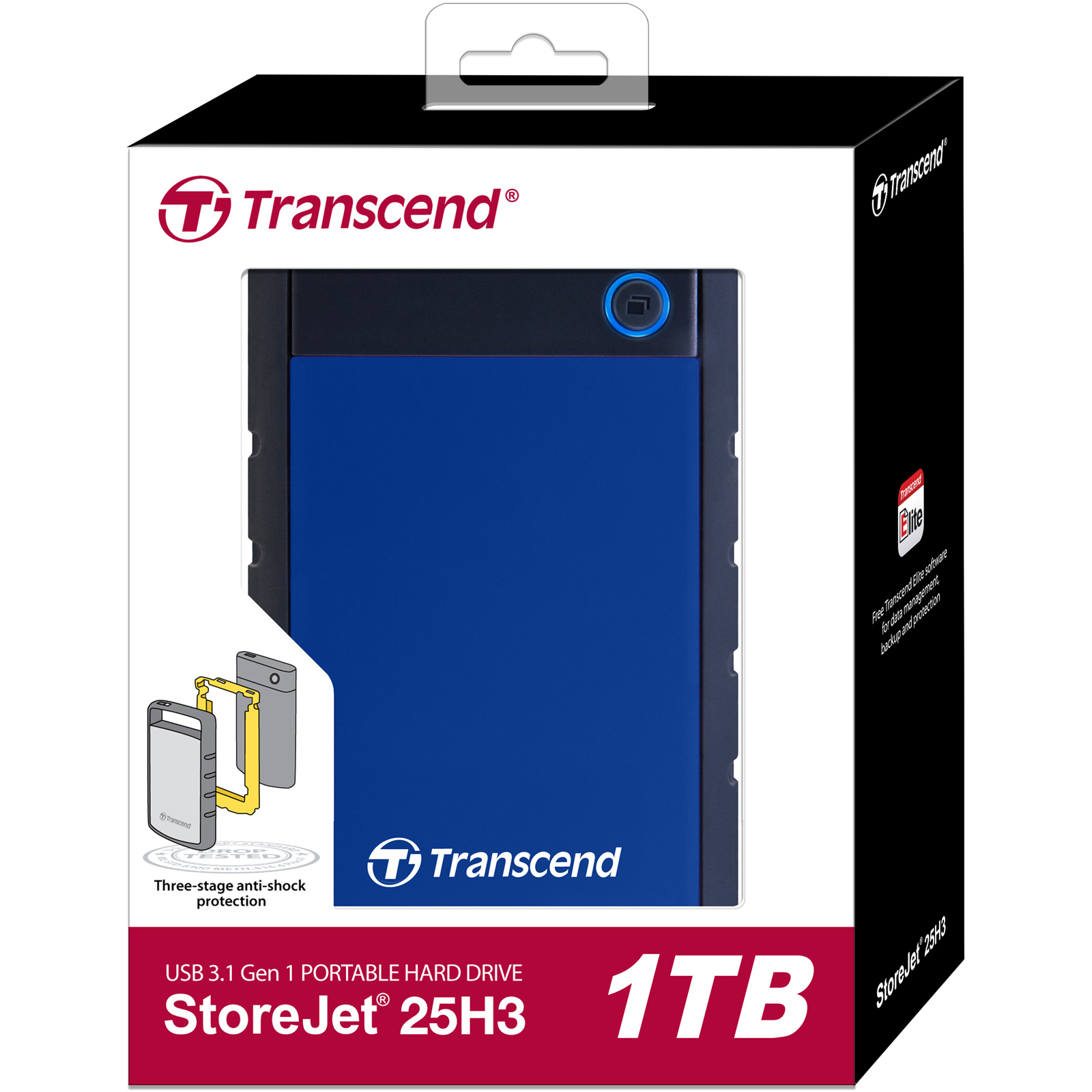 Transcend StoreJet 25H3 1TB Portable External HDD - Blue 2.5" - USB 3.0 - Durable Anti-shock Silicon Outer Shell - Military-Grade Shock Resistance