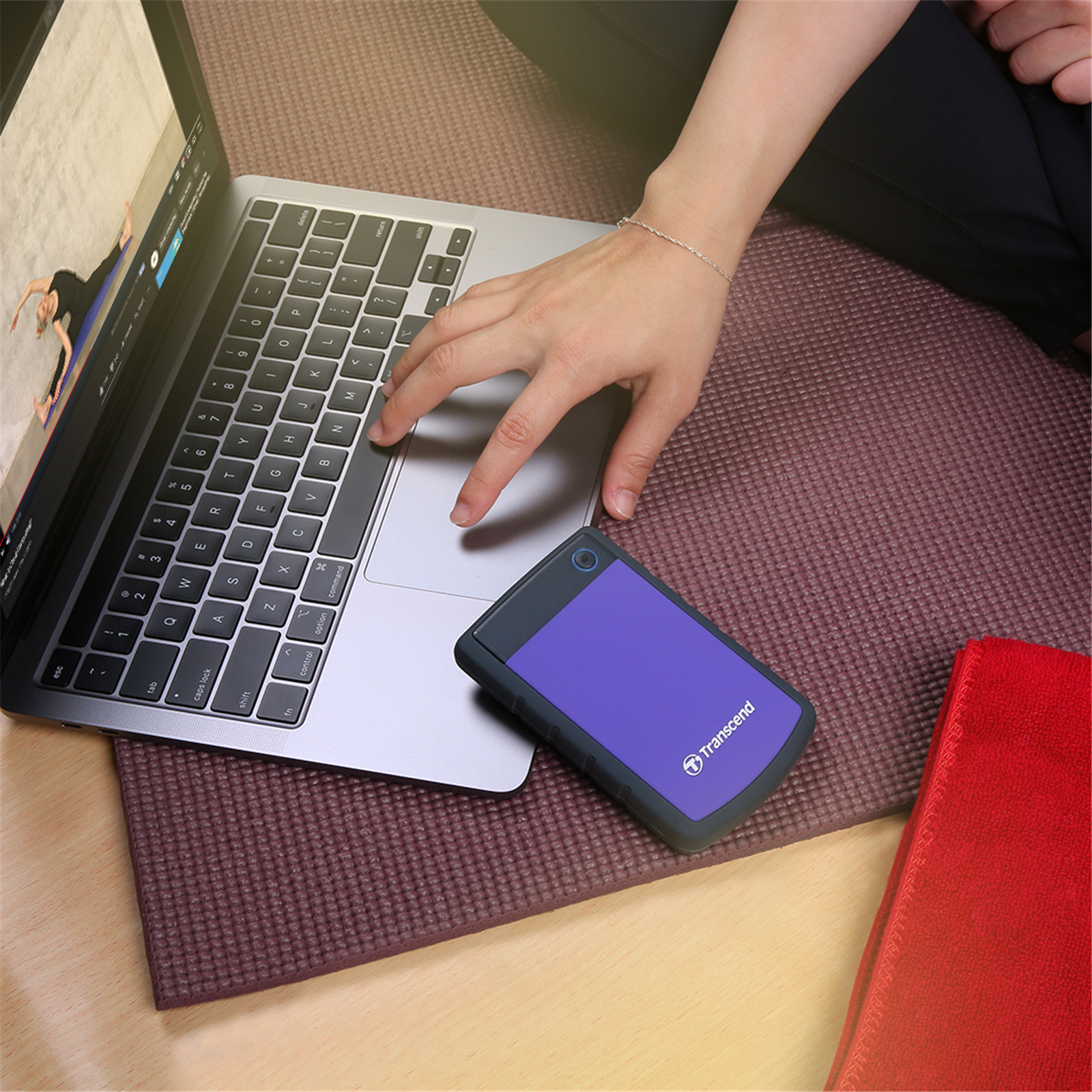 The StoreJet 25H3 portable hard drive was designed with high endurance in mind. The ruggedized case and the anti-slip texture allow you to store and share wherever you go. Two color options, navy blue and purple, make for a stylish, trendy storage experience!