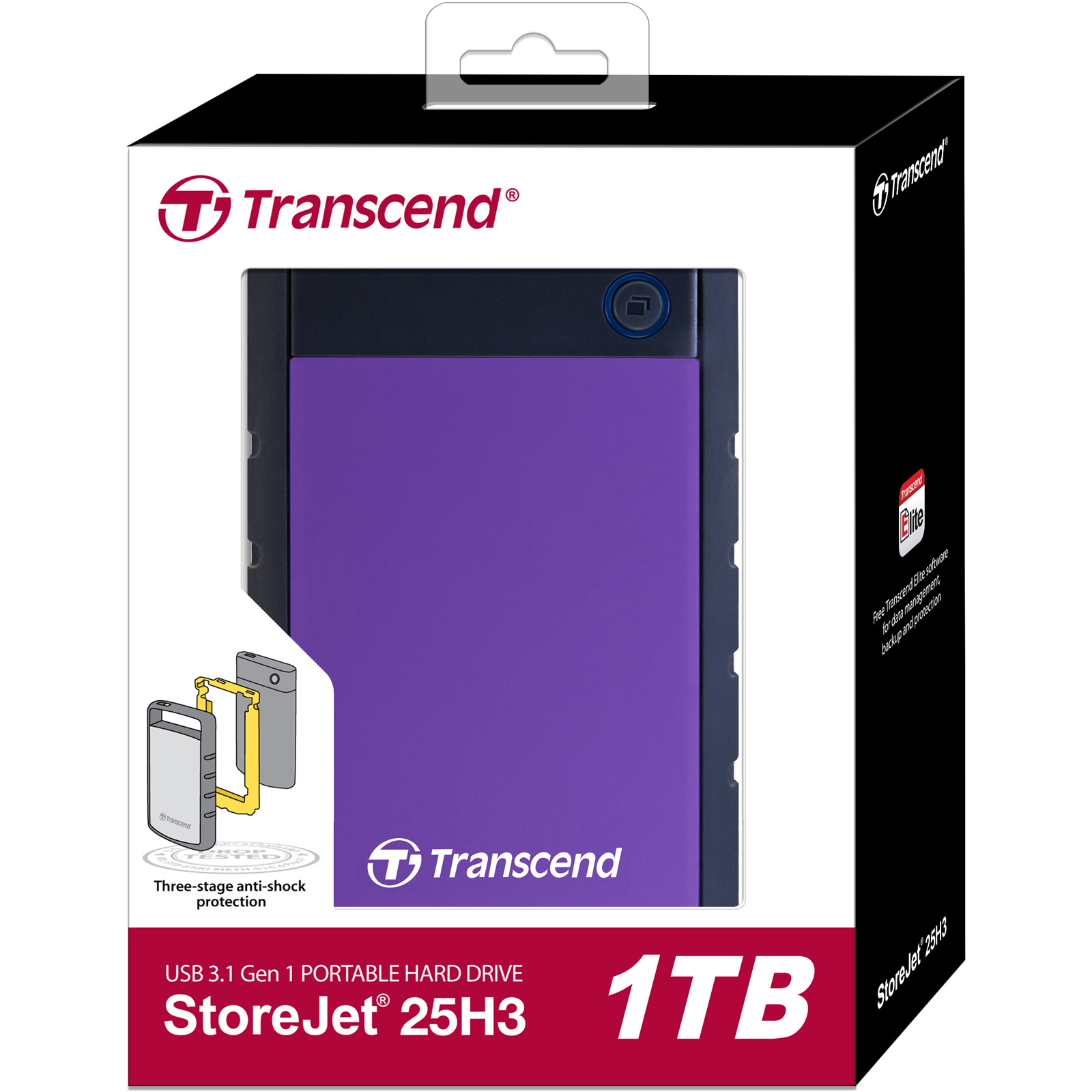 Transcend StoreJet 25H3 1TB Portable External HDD - Purple 2.5" - USB 3.0 - Durable Anti-shock Silicon Outer Shell - Military-Grade Shock Resistance