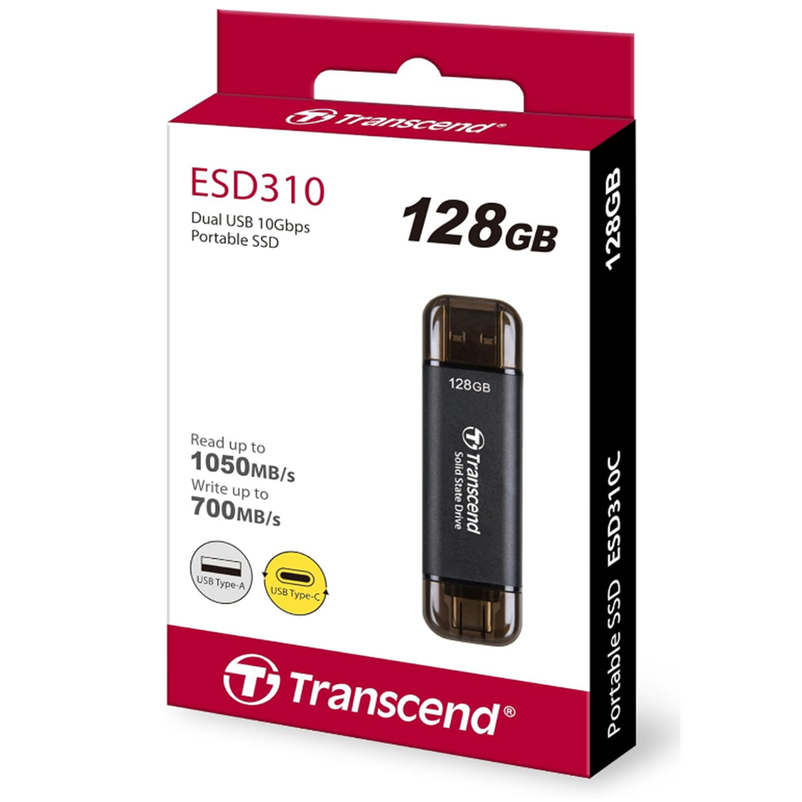 Transcend ESD310C 128GB Portable External SSD USB-C & USB-A - Read up to 1050MB/s