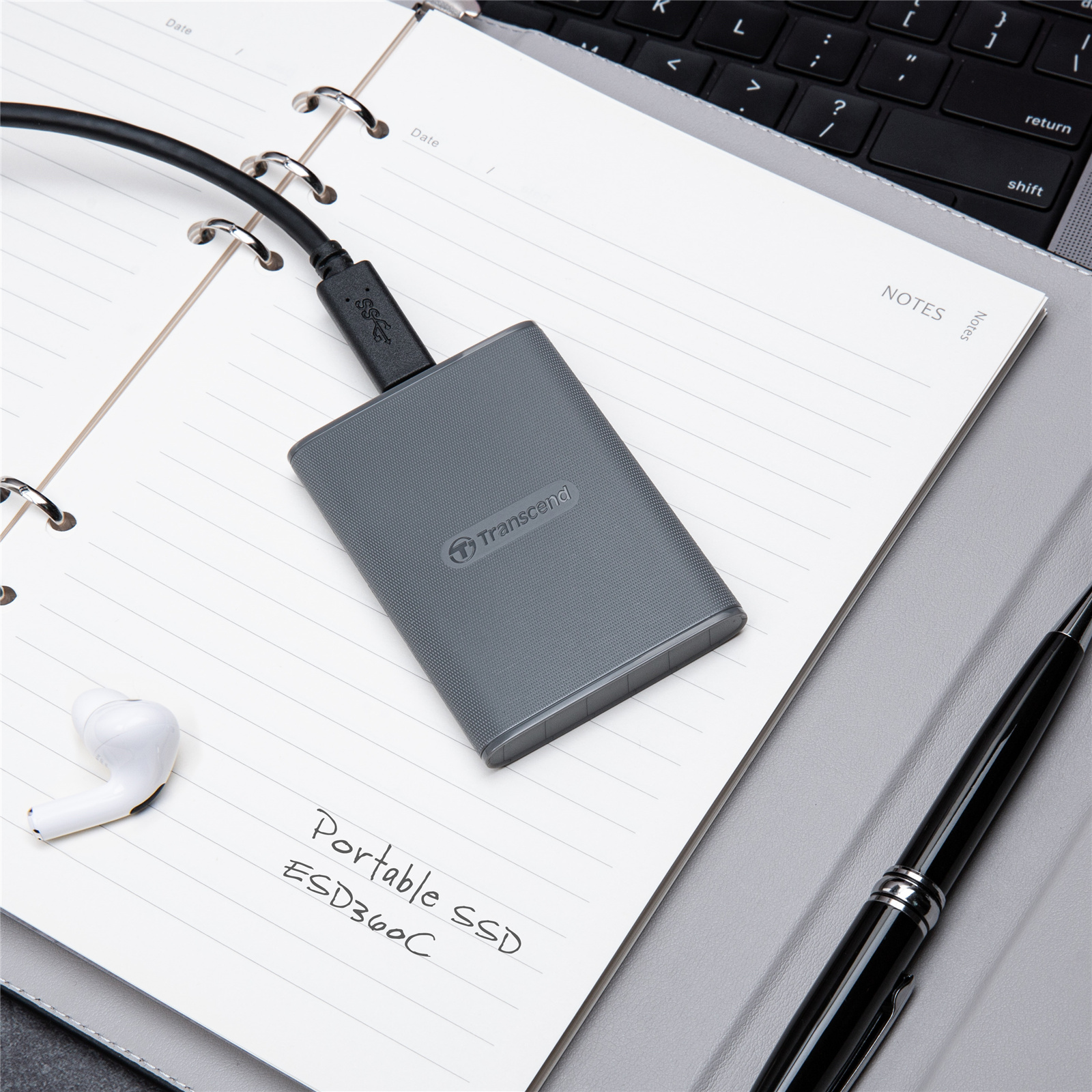 Transcend's ESD360C comes with both a USB Type-C cable and a USB Type-C to Type-A cable to accommodate desktops, laptops, and tablets featuring the USB Type-C or Type-A port.