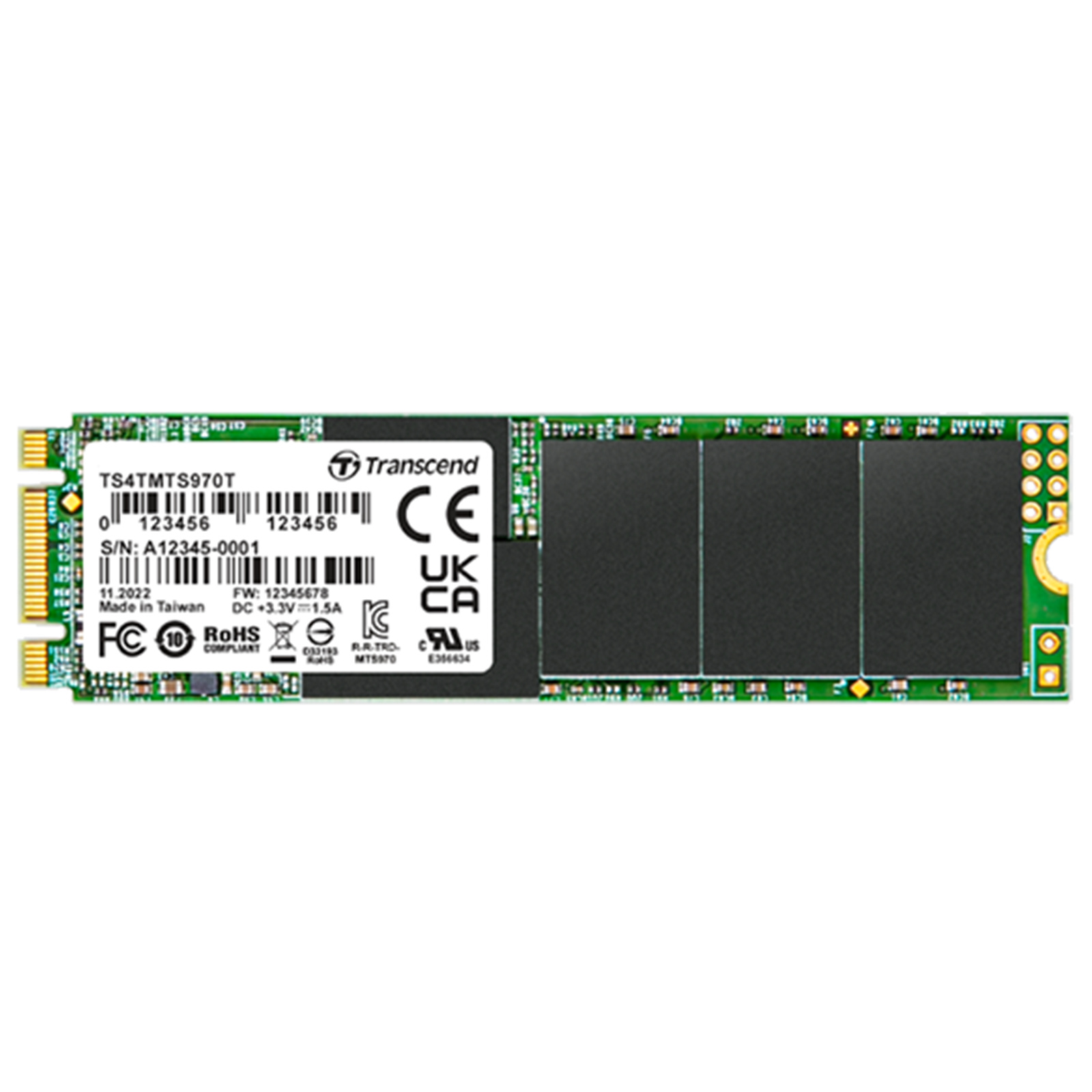 Transcend's M.2 SSD MTS970T features the SATA III 6Gb/s interface and the state-of-the-art 3D NAND technology, which allows 112 layers of 3D NAND flash chips to be vertically stacked. Compared to 3D NAND at 96 layers, this density breakthrough greatly improves storage efficiency, and its built-in DRAM cache allows faster access. Applied with 30µ" gold finger PCB and Corner Bond technology, the MTS970T is fully tested in-house to guarantee reliability in mission-critical applications, boasting an endurance rating of 3K Program/Erase cycles and an extended operating temperature ranging from -20?~75?.