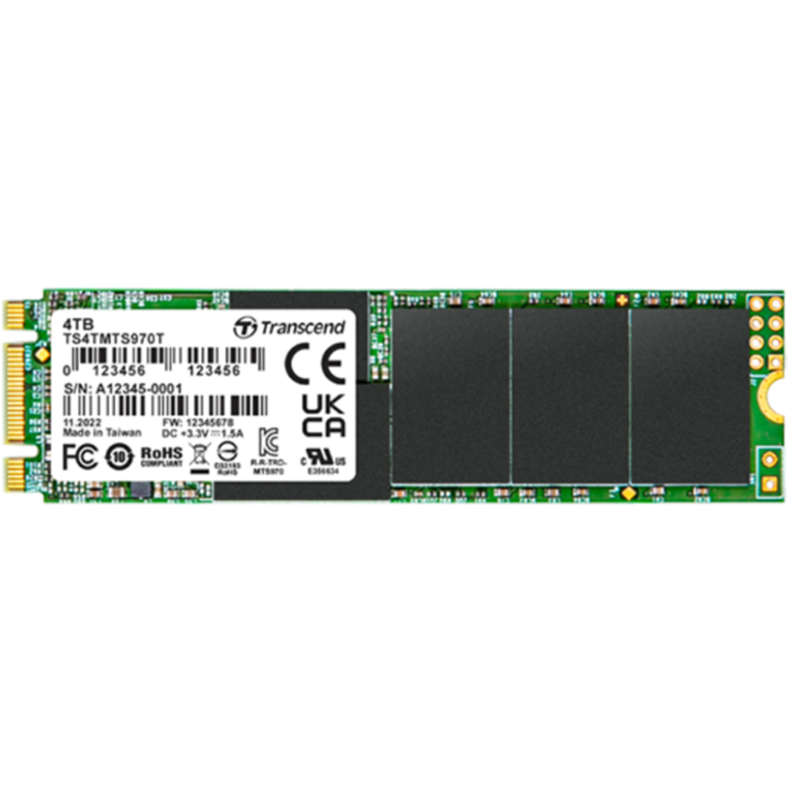 Transcend's M.2 SSD MTS970T features the SATA III 6Gb/s interface and the state-of-the-art 3D NAND technology, which allows 112 layers of 3D NAND flash chips to be vertically stacked. Compared to 3D NAND at 96 layers, this density breakthrough greatly improves storage efficiency, and its built-in DRAM cache allows faster access. Applied with 30µ" gold finger PCB and Corner Bond technology, the MTS970T is fully tested in-house to guarantee reliability in mission-critical applications, boasting an endurance rating of 3K Program/Erase cycles and an extended operating temperature ranging from -20°C~75°C.