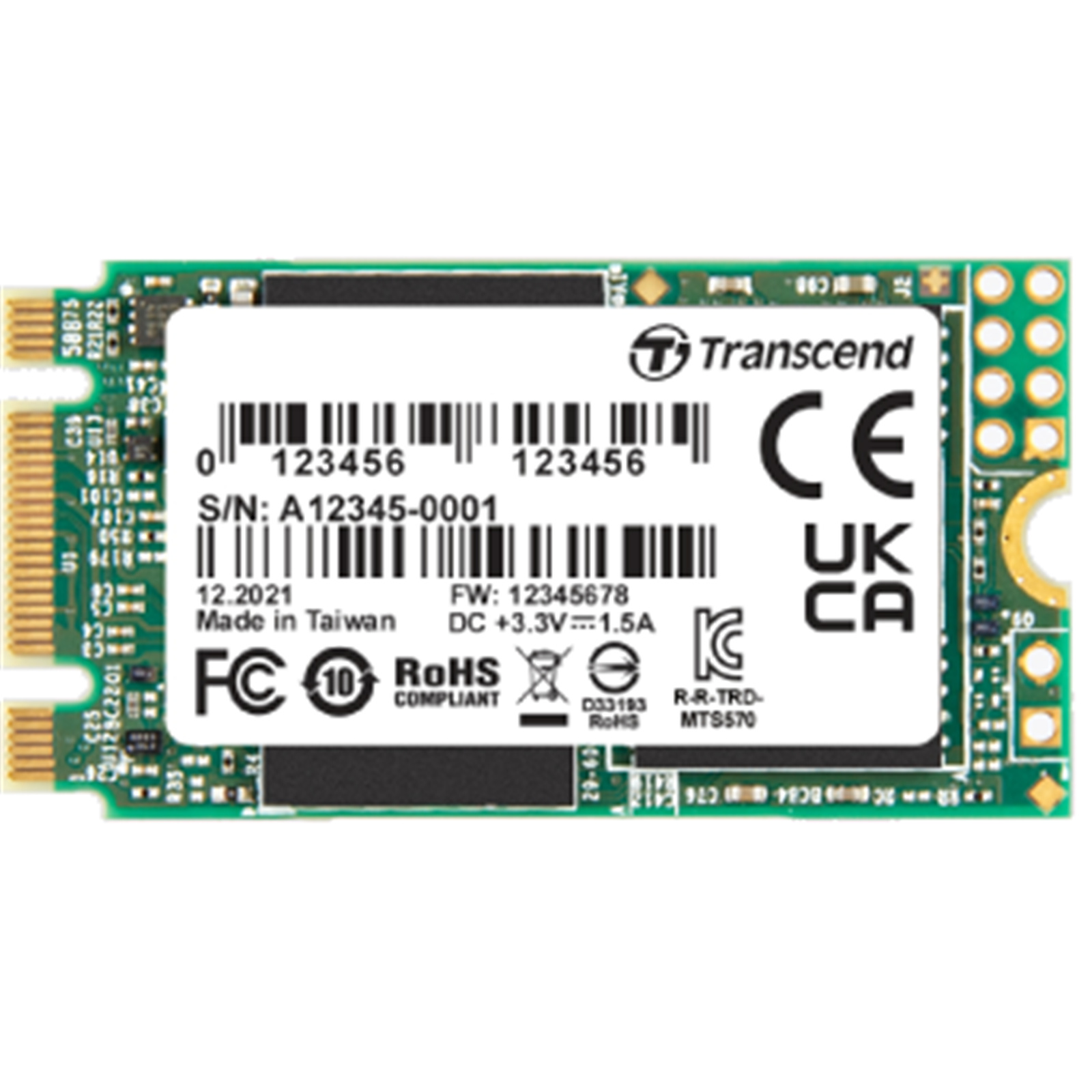 Transcend's M.2 SSD MTS570T features the SATA III 6Gb/s interface and the state-of-the-art 3D NAND technology, which allows 112 layers of 3D NAND flash chips to be vertically stacked. Compared to 3D NAND at 96 layers, this density breakthrough greatly improves storage efficiency, and its built-in DRAM cache allows faster access. Applied with 30µ" gold finger PCB and Corner Bond technology, the MTS570T is fully tested in-house to guarantee reliability in mission-critical applications, boasting an endurance rating of 3K Program/Erase cycles and an extended operating temperature ranging from -20?~75?.