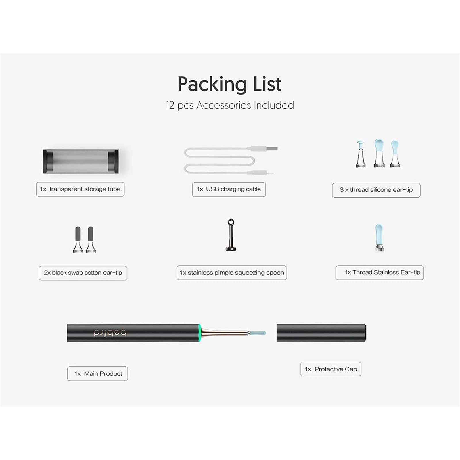 Bebird T15 Smart Ear Wax Removal - Black 5MP Camera & 6 Axis Gyroscope Sensor - Squeeze Pox and Rod 2 in 1 with 12 Pcs Accessories Included - AS/NZS Certified