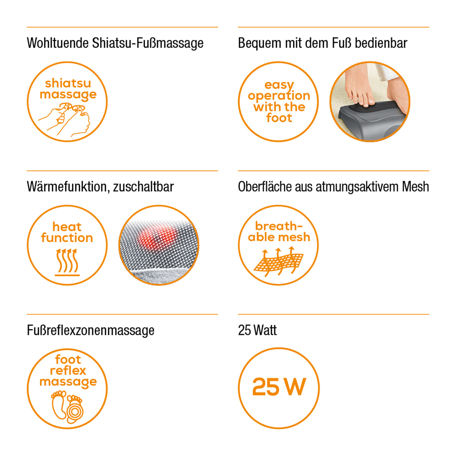 Beurer Shiatsu FM39 Foot Massager with Heat 6 Rotating Massage Heads - Comfortable Surface Made of Breathable Mesh