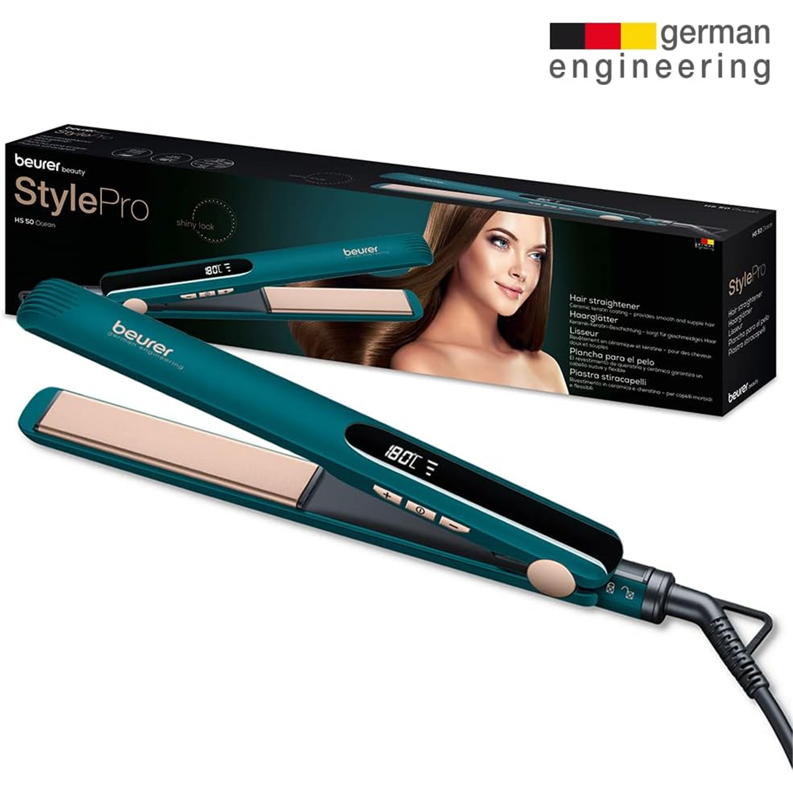 Beurer HS50 Ocean Hair Straightener, Straightener with Ceramic Keratin Coating for Smooth Hair LED Display for Temperature Display, Multi-Level Temperature Setting from 120-220°C