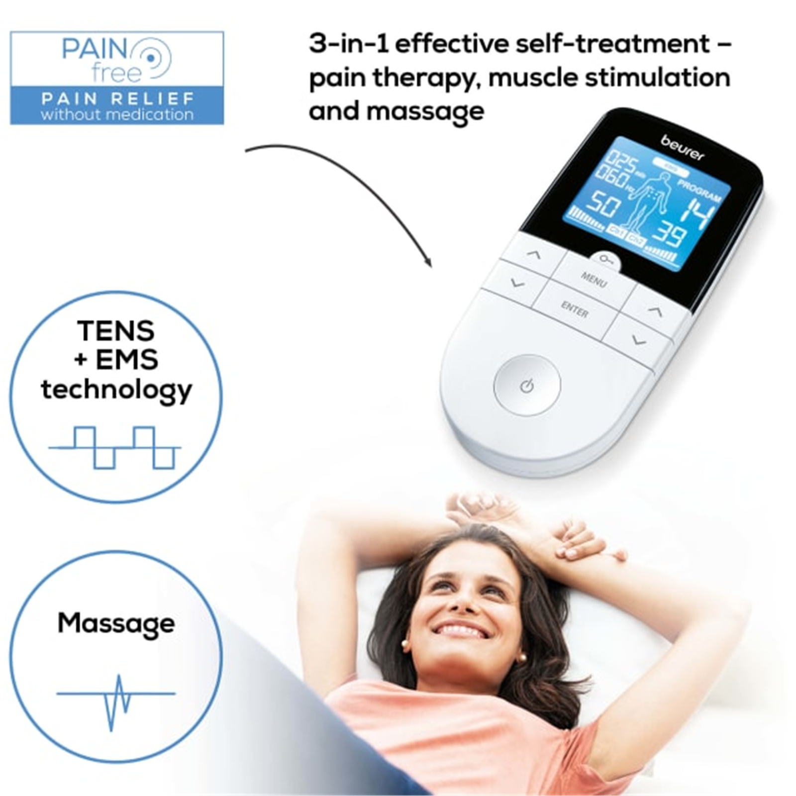 Beurer EM49 Digital TENS / EMS Unit Pain Therapy (TENS) & Muscle Stimulation (EMS) Drug-Free Natural Pain Relief - 3-in-1 Pain Relief - Rehabilitation & Massage
