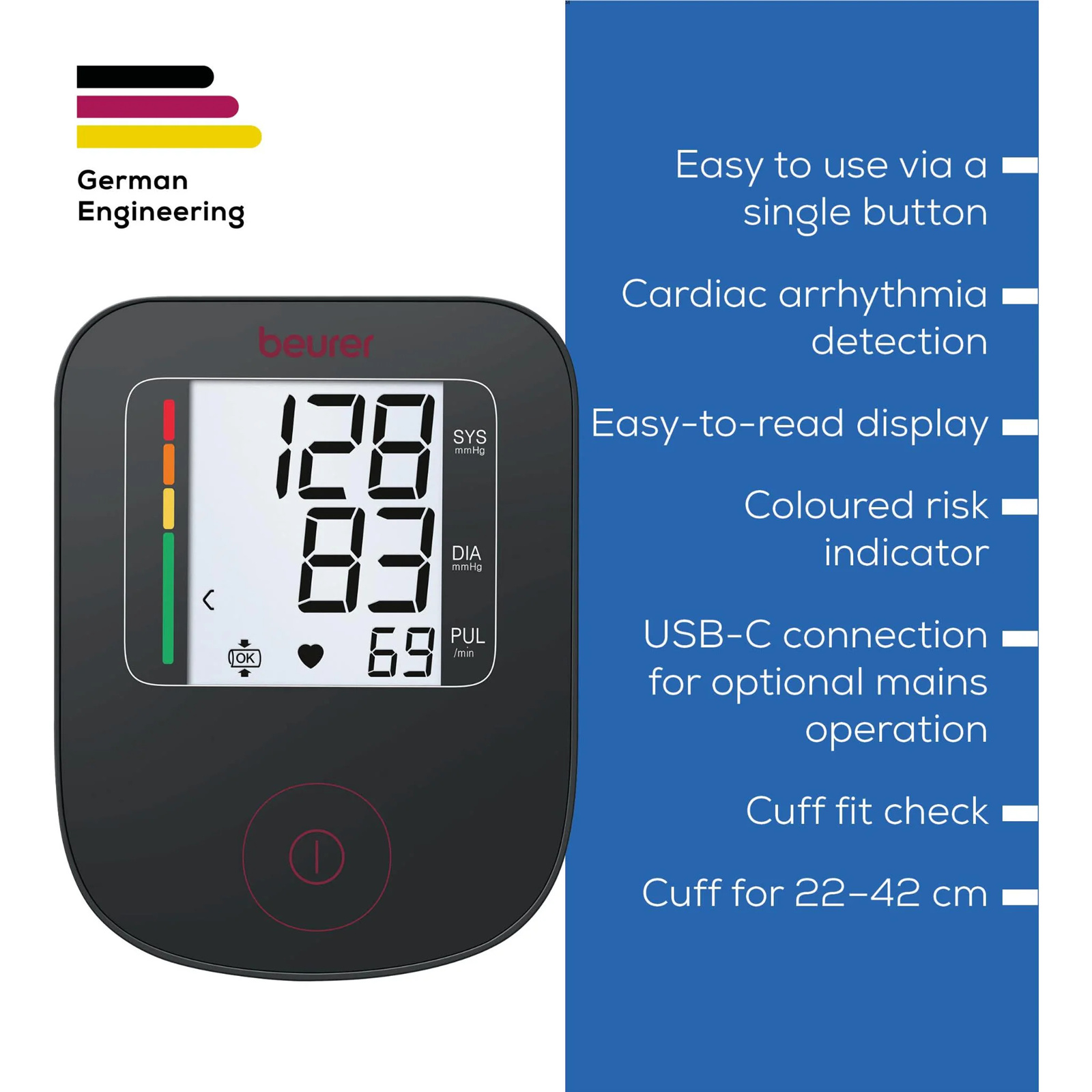 - With cuff for upper arm circumferences from 22 - 42 cm