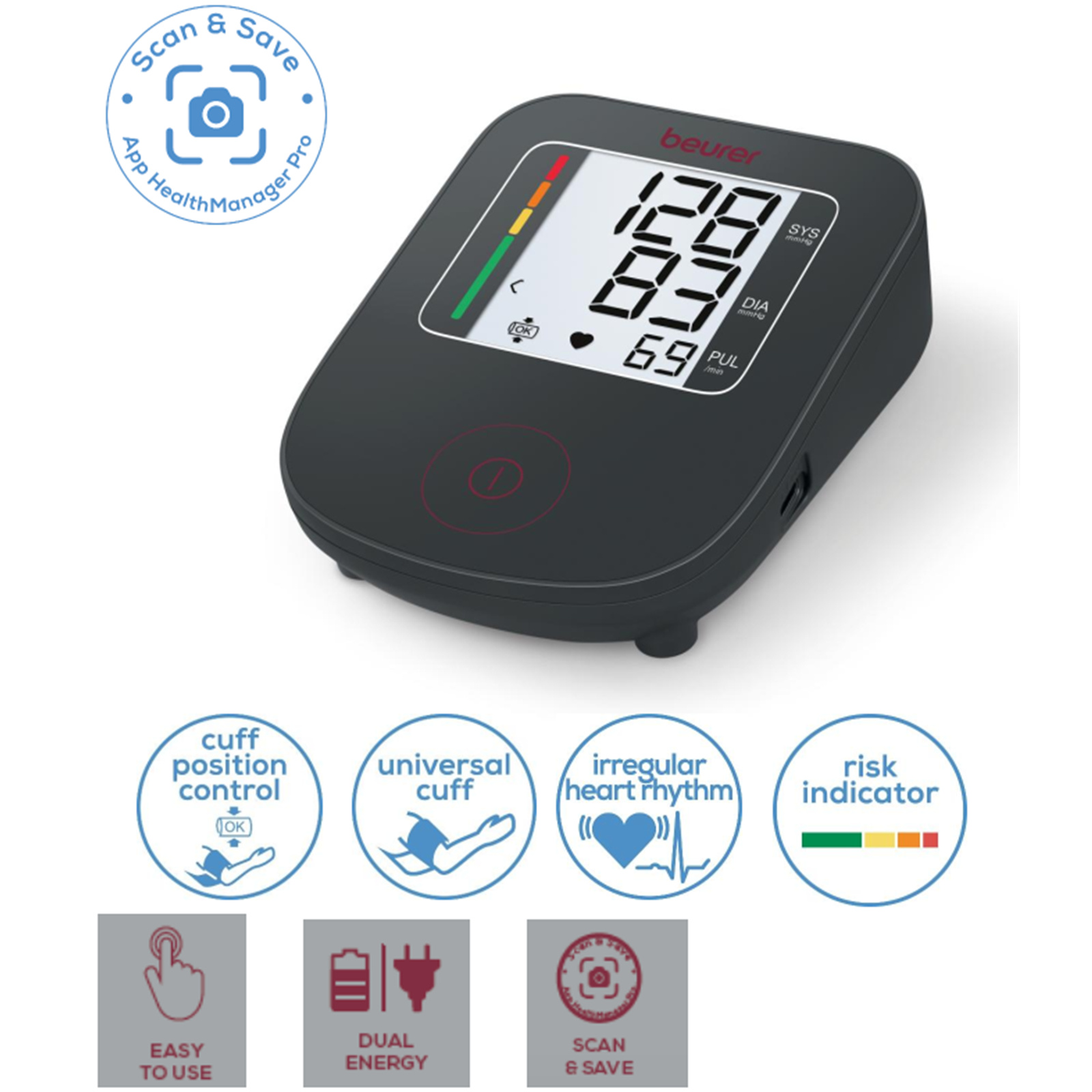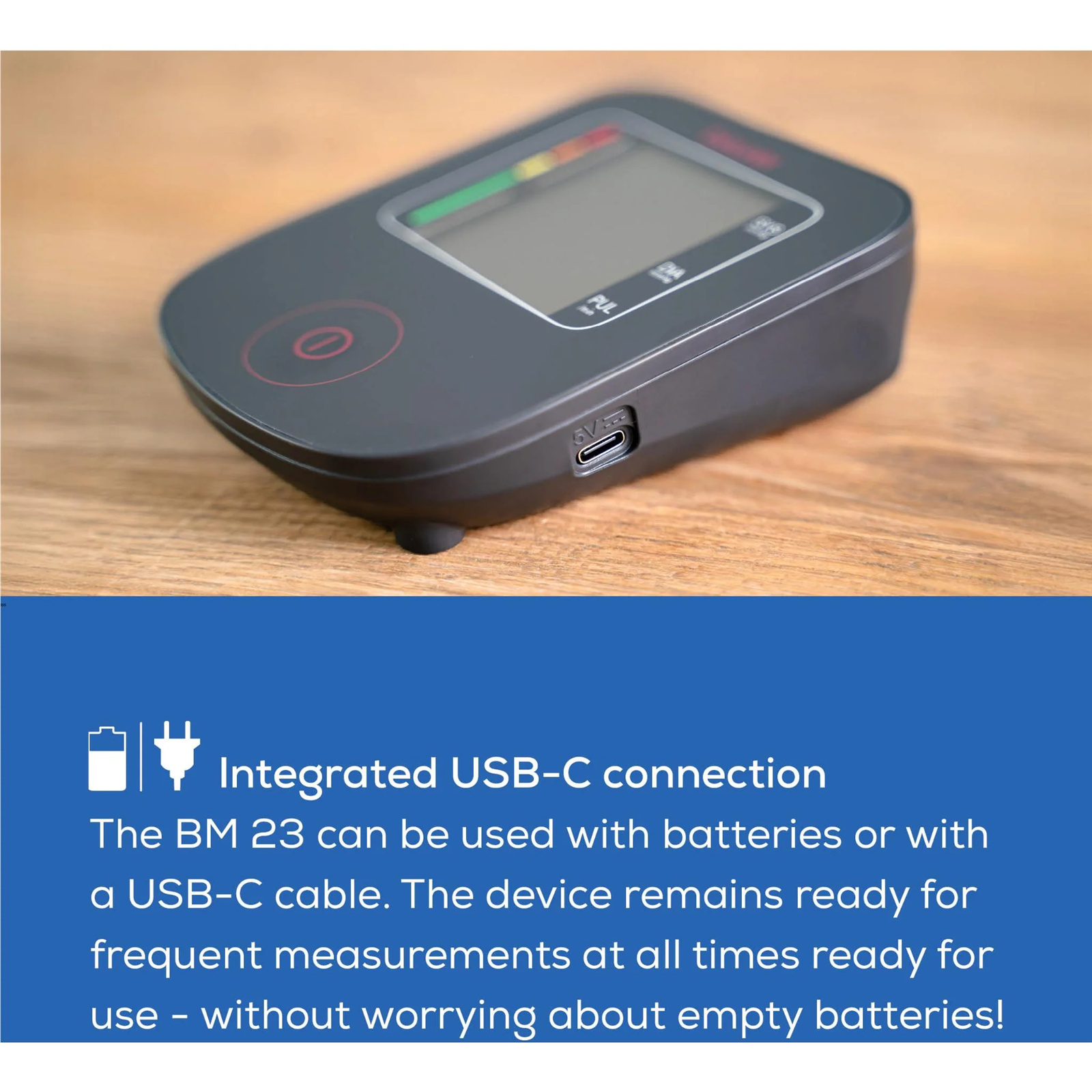 USB-C port for power and app connectivity (Scan & Save with Beurer HealthManager Pro app)