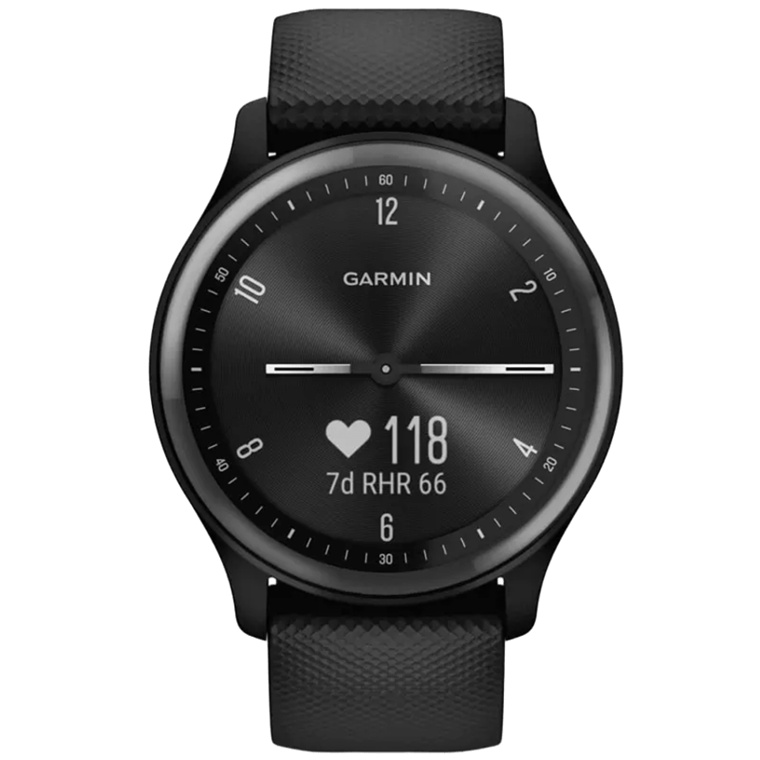 Garmin vivomove Sport Hybrid Smartwatch - Black Case & Silicone Band with Slate Accents