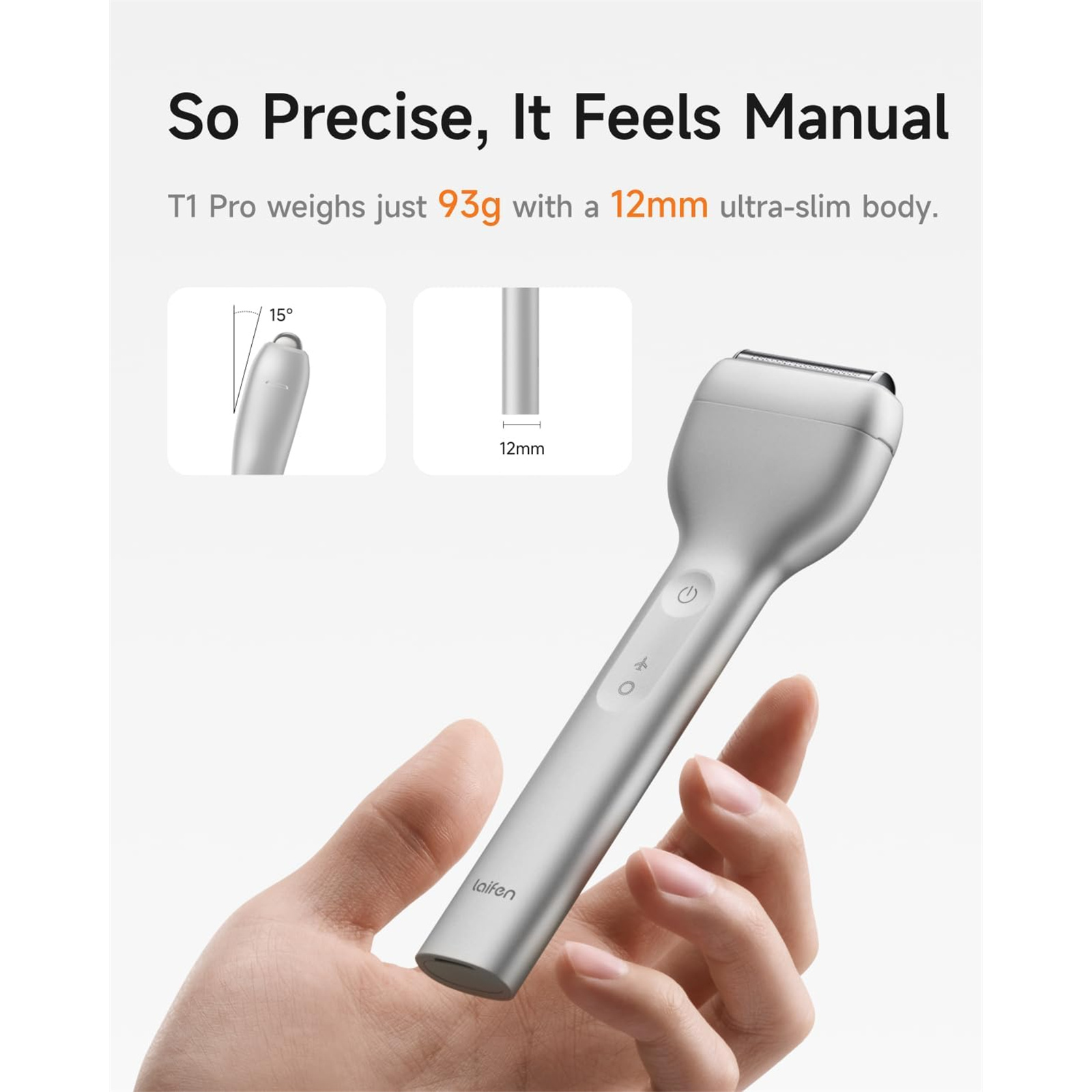 - So Precise, It Feels Manual: The world's first CNC-crafted aerospace-grade aluminum shaver offers unmatched durability. Apple-grade sandblasting delivers a smooth matte finish. 73% thinner than conventional shavers, the T-shaped curved body and 15° angled head ensure effortless control and comfort.