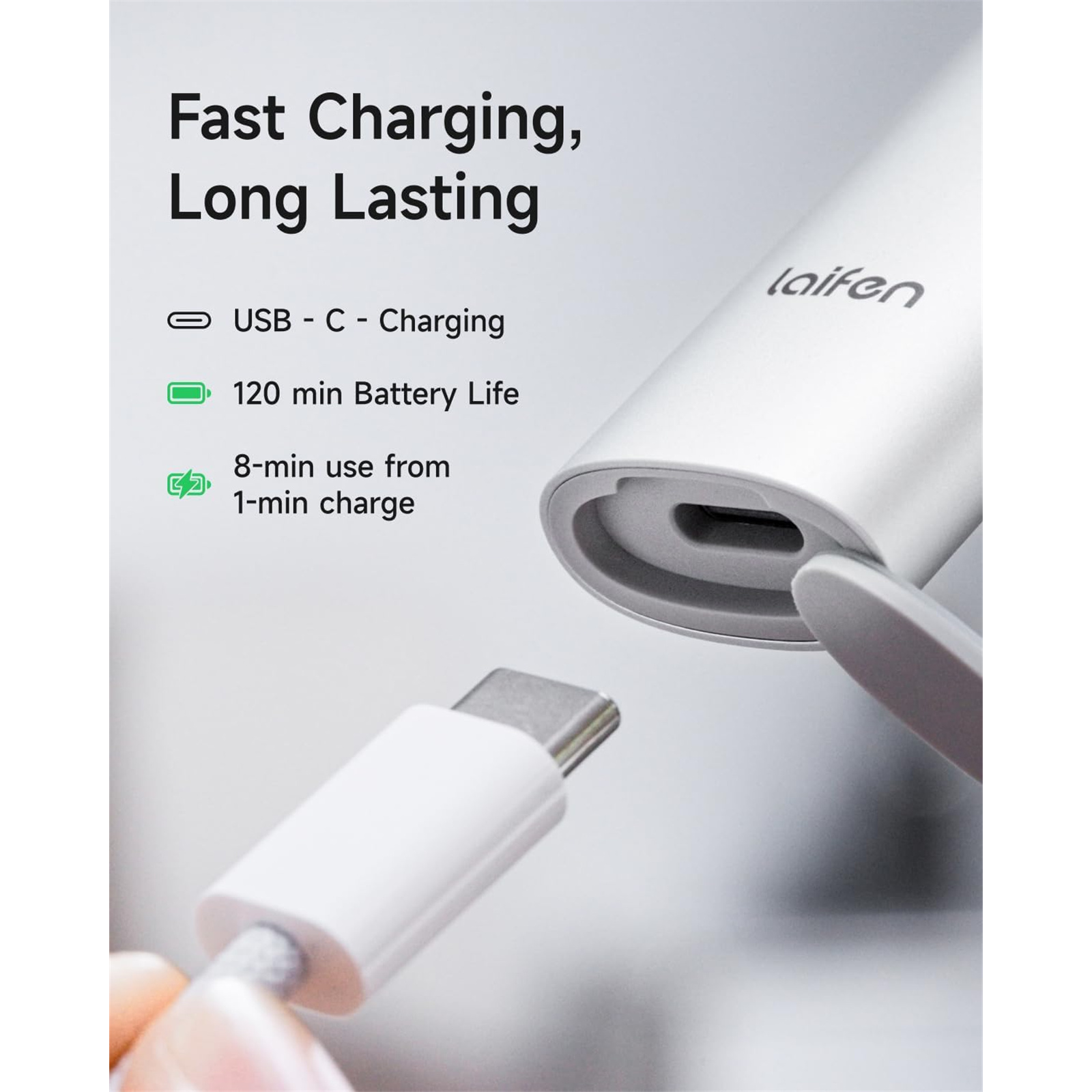 - Long Battery life & Fast Charging: Enjoy up to 120min of battery life with USB-C fast charging. A 1-minute charge provides 8 minutes of use. Weighing just 93g and only 12mm thick, its ultra-slim, lightweight design makes it perfect for travel. Travel Mode prevents accidental activation for peace of mind.