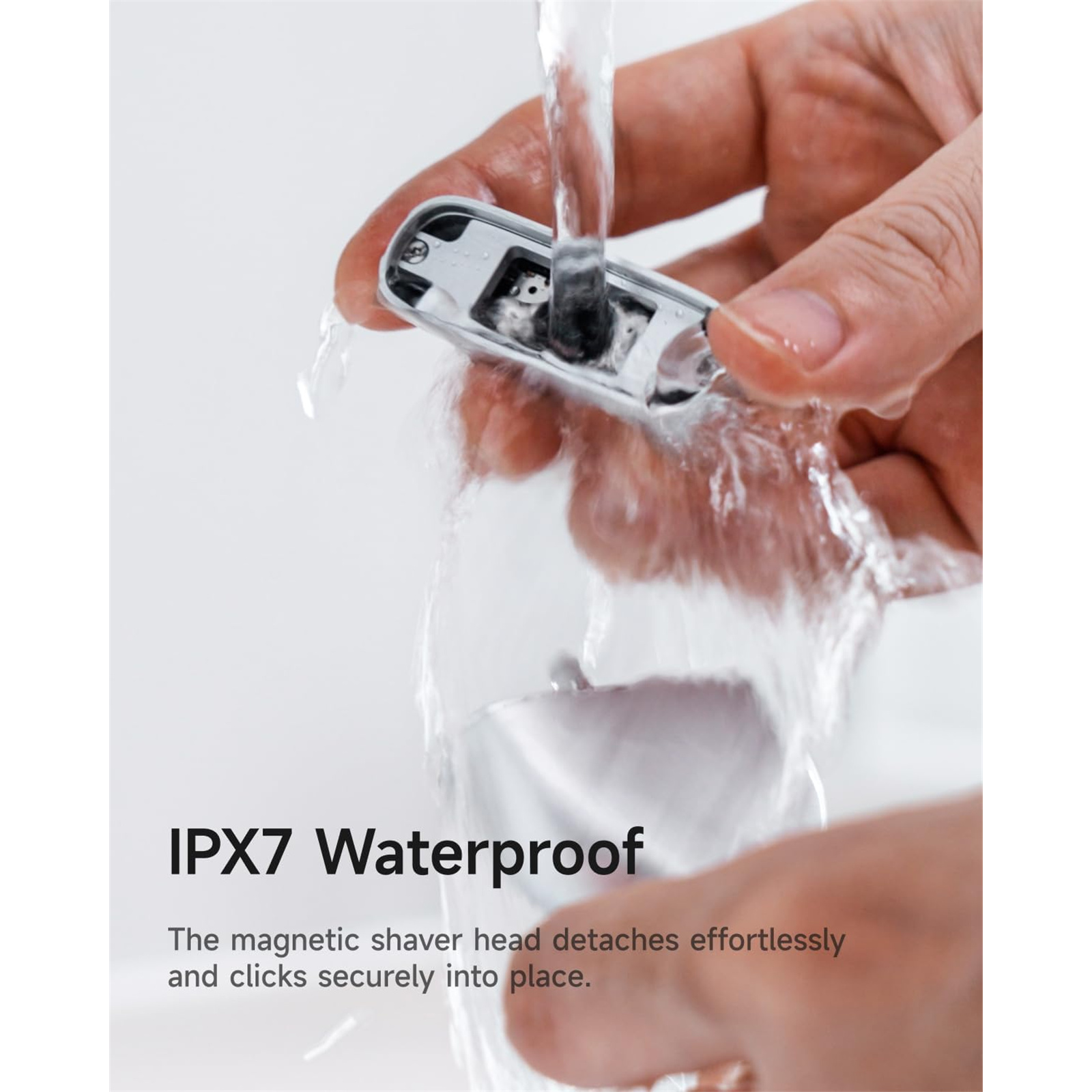 - IPX7-Waterproof: The low-nickel foil minimizes irritation, while stainless steel blades last up to 1.5 years*. Includes three precision trimmer guards and a protective storage case. IPX7-waterproof with magnetic snap-on heads for seamless wet & dry shaving and easy cleaning. *Blade lifespan varies based on usage.