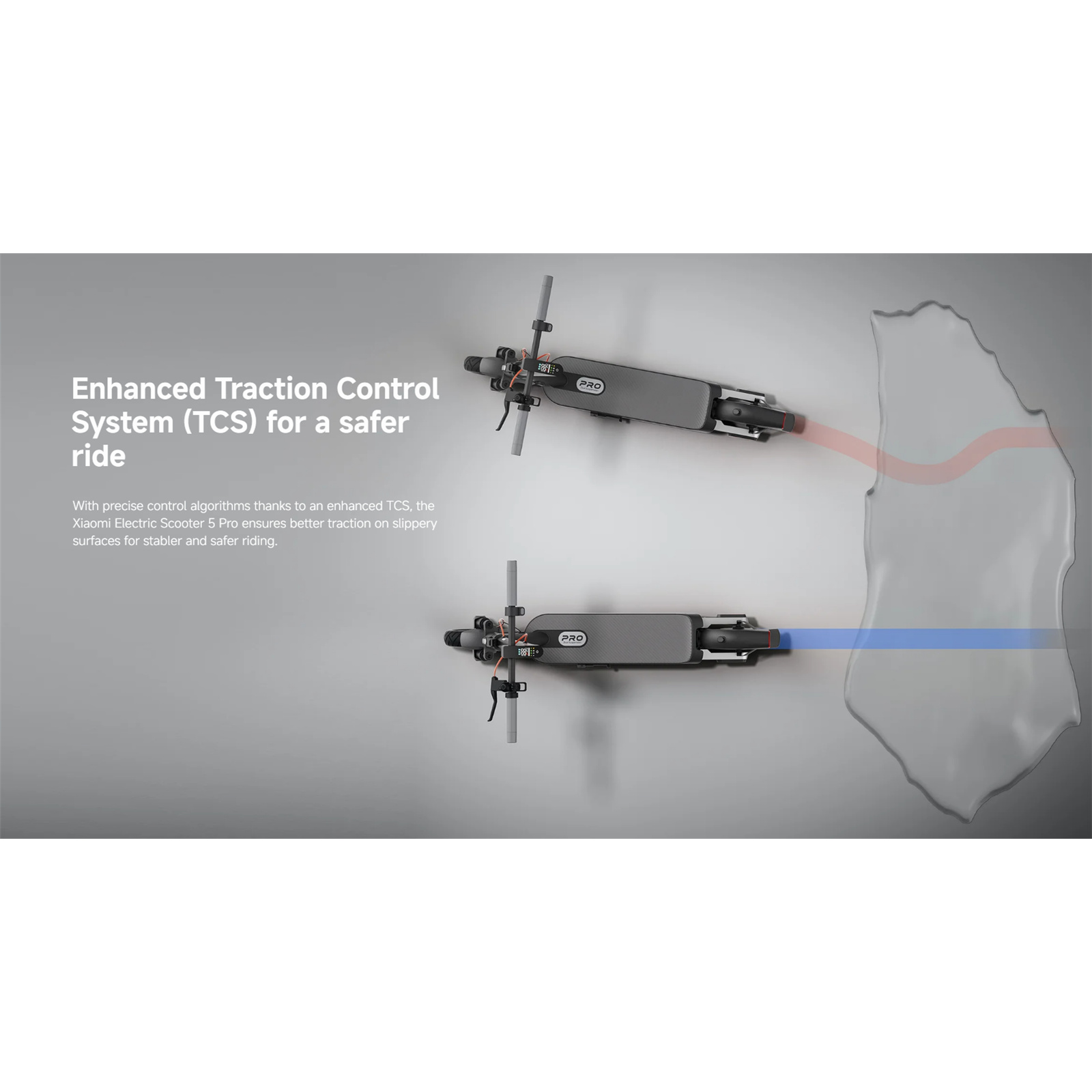 With precise control algorithms thanks to an enhanced TCS, the Xiaomi Electric Scooter 5 Pro ensures better traction on slippery surfaces for stabler and safer riding.
