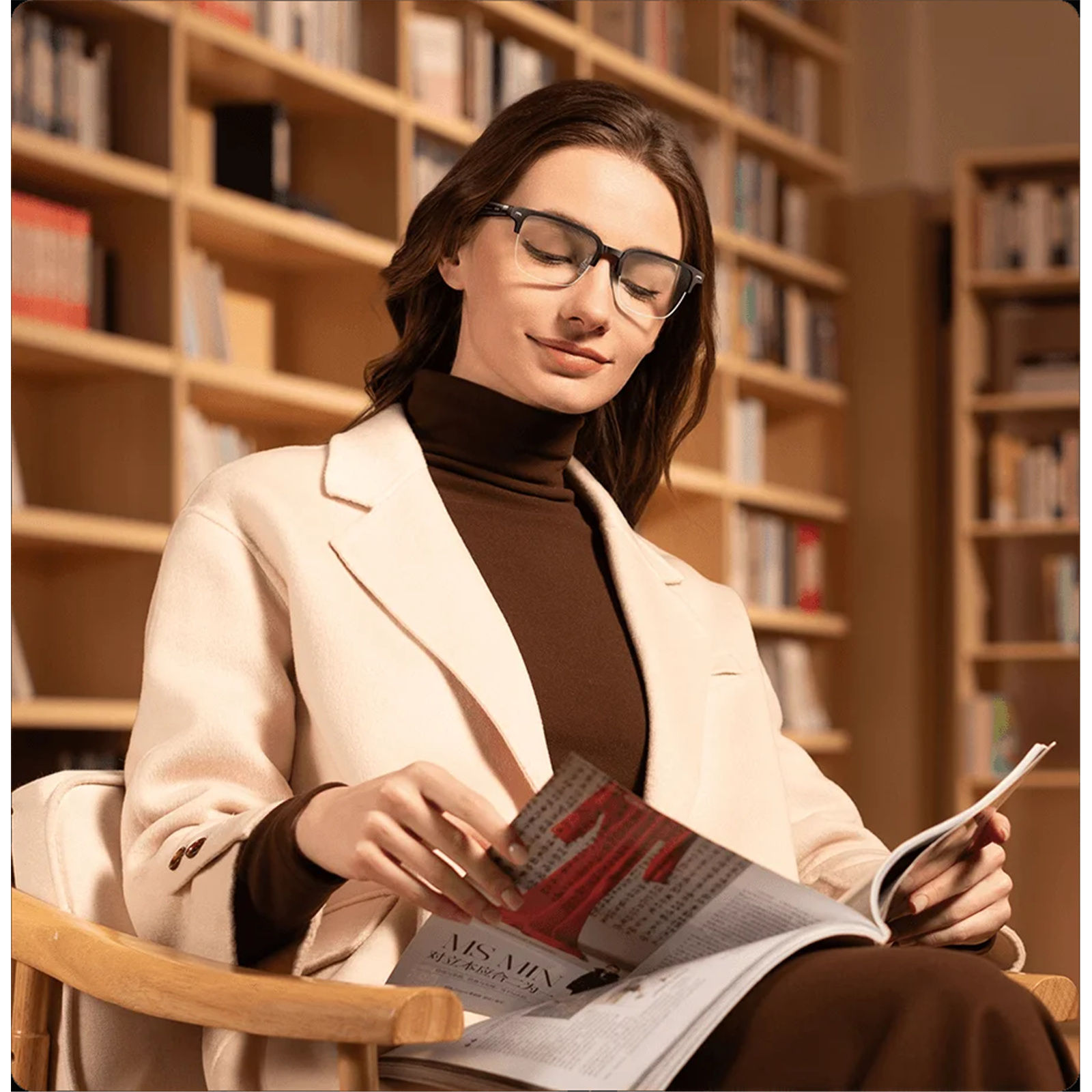 Adopting an SLS0820 ultrasonic speaker and sound cavity structure algorithm, the glasses achieve real-time tone compensation and optimised sound quality, providing chip-level sound enhancement. This enables the glasses to deliver a rich, deep bass and vibrant, clear treble for a truly enjoyable listening experience.