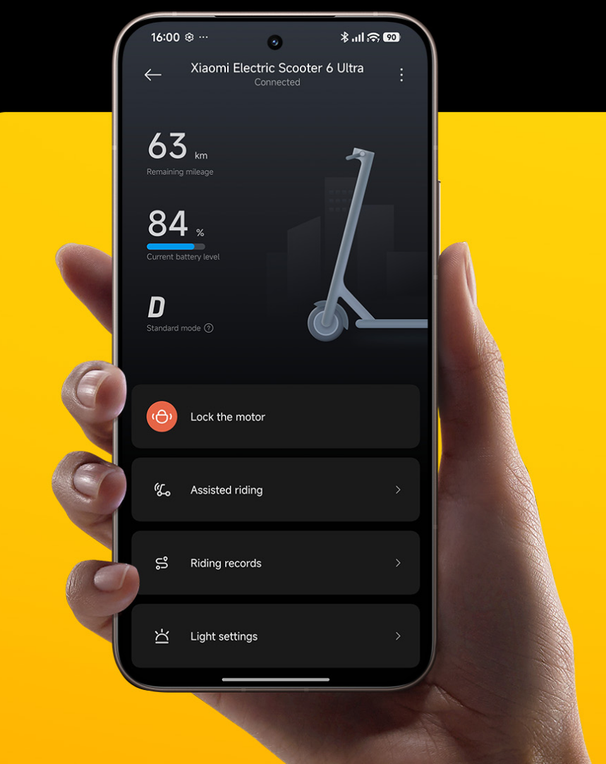 Connect your scooter to the Xiaomi Home app to view real-time data and customize passcode settings.