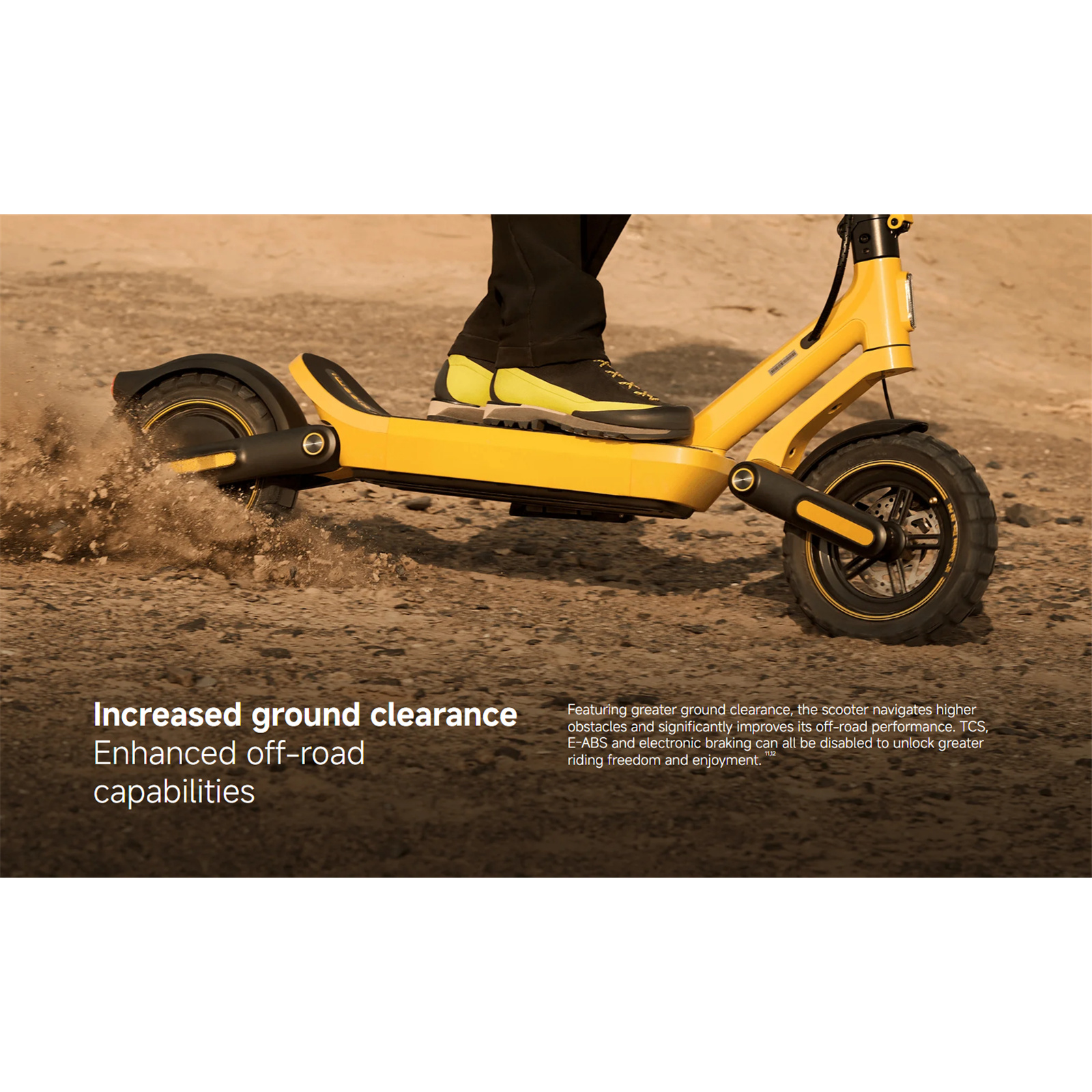 Featuring greater ground clearance, the scooter navigates higher obstacles and significantly improves its off-road performance. TCS, E-ABS and electronic braking can all be disabled to unlock greater riding freedom and enjoyment.