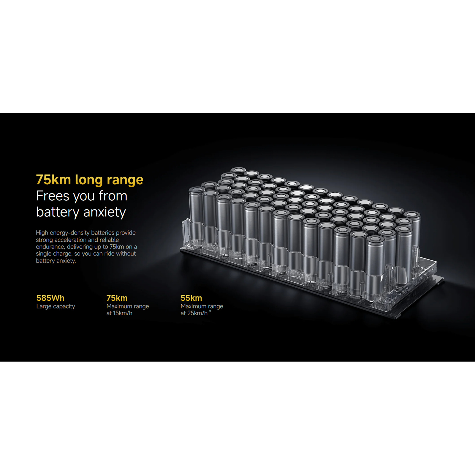 High energy-density batteries provide strong acceleration and reliable endurance, delivering up to 75km on a single charge, so you can ride without battery anxiety.