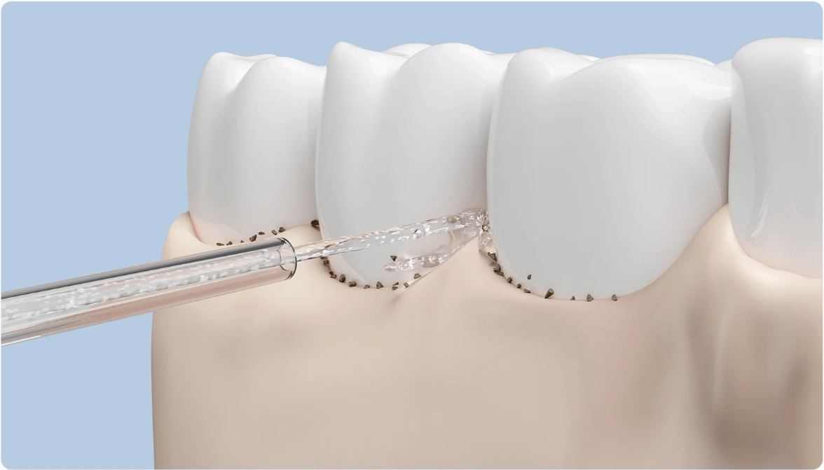 The standard tip delivers a stream as fine as 0.6mm* to effectively clean tiny gaps between your teeth and hard-to-reach areas in the mouth.