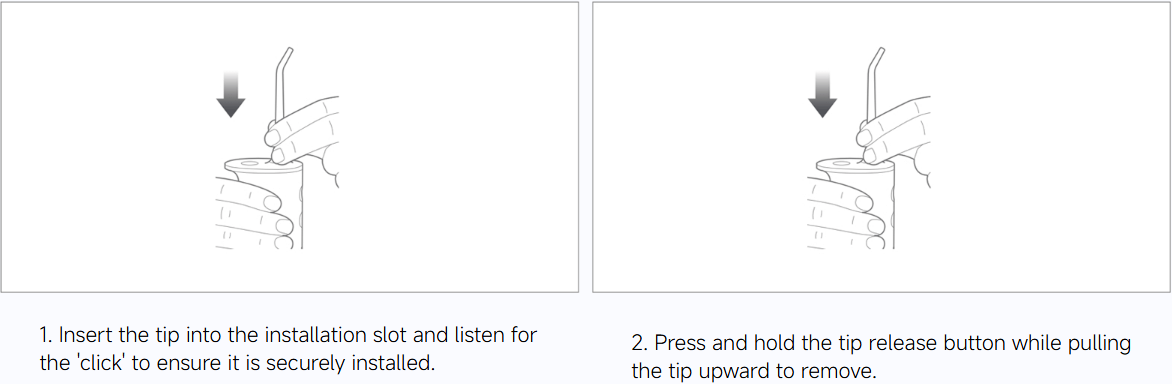 The tip can rotate 360° once inserted to easily cover your whole mouth for convenient cleaning.