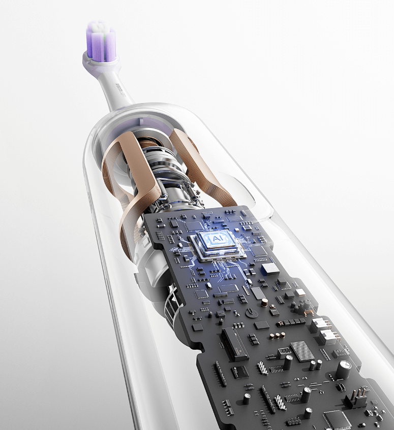 The toothbrush uses the Bass brushing technique for targeted cleaning. It intelligently identifies teeth surfaces and automatically adjusts the angle and level of vibration to ensure each tooth is cleaned thoroughly.