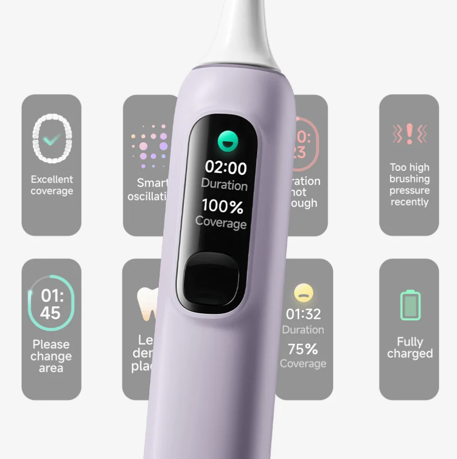 The smart colour digital display provides real-time monitoring and feedback on your brushing.