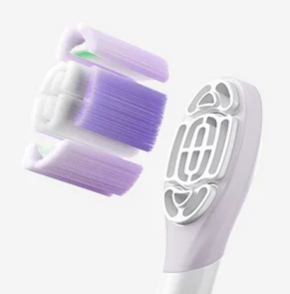 The clean head features a dual spiral column* design that closely conforms to tooth contours to meet daily brushing needs. The circular-patterned soft head ensures gentle cleaning for sensitive teeth and gums.