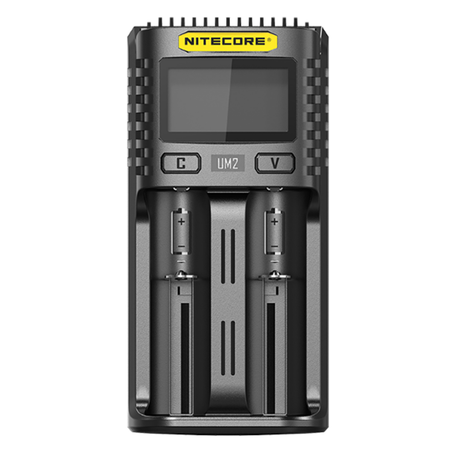 The new NITECORE UM2 is a QC input available, intelligent USB dual-slot charger, with a total max output of 3,000 mA and a single slot max output of 1,500 mA and is capable of charging 2 batteries simultaneously and controlling each slot independently. It only takes 2 hours to charge 80% of a 3,500mAh battery.