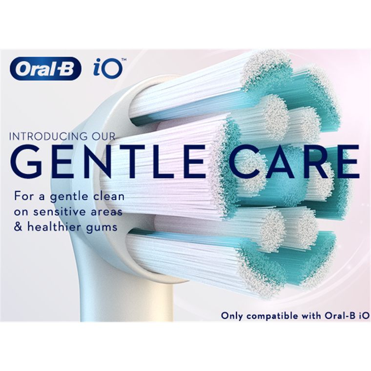 The Oral B io series combines powerful, but gentle micro-vibrations with Oral B's unique dentist-inspired round brush head design for a professional clean feeling every day. The Oral-B iO GENTLE Care brush is specially designed for gentle and effective cleaning on sensitive areas and gums. Dentists recommend changing your toothbrush head every 3 months for best results.