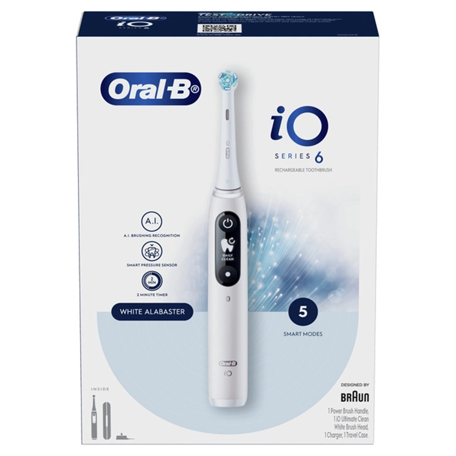 Oral-B iO Series 6 Electric Toothbrush (White) with charging stand and travel case