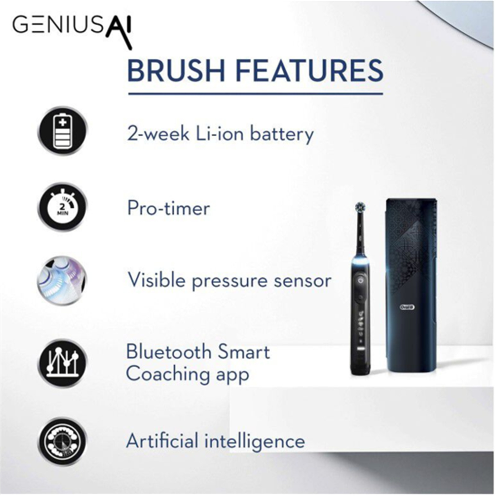 Oral-B Genius AI 10000 Electric Toothbrush with Artificial Intelligence - Black Artificial Intelligence Recognizes your Brushing Style - for your Best Results Every Day - Removes 100% more Plaque