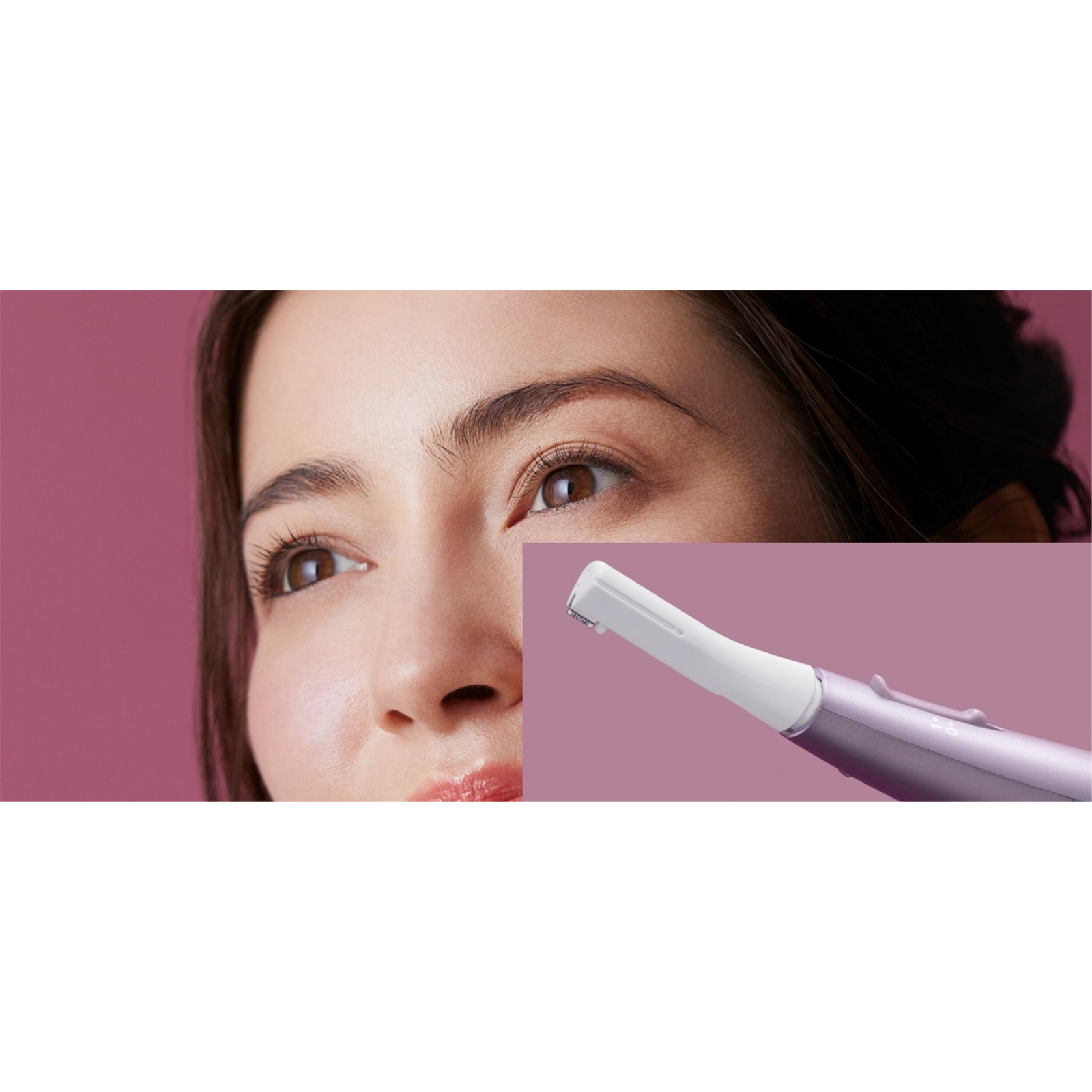 Two blades in one flexible design makes it easy to achieve beautifully smooth skin and well-defined eyebrows. Use the Eyebrow Blade to shape and style your brows and switch to the Facial Hair Blade to remove peach fuzz and leave skin feeling smooth.