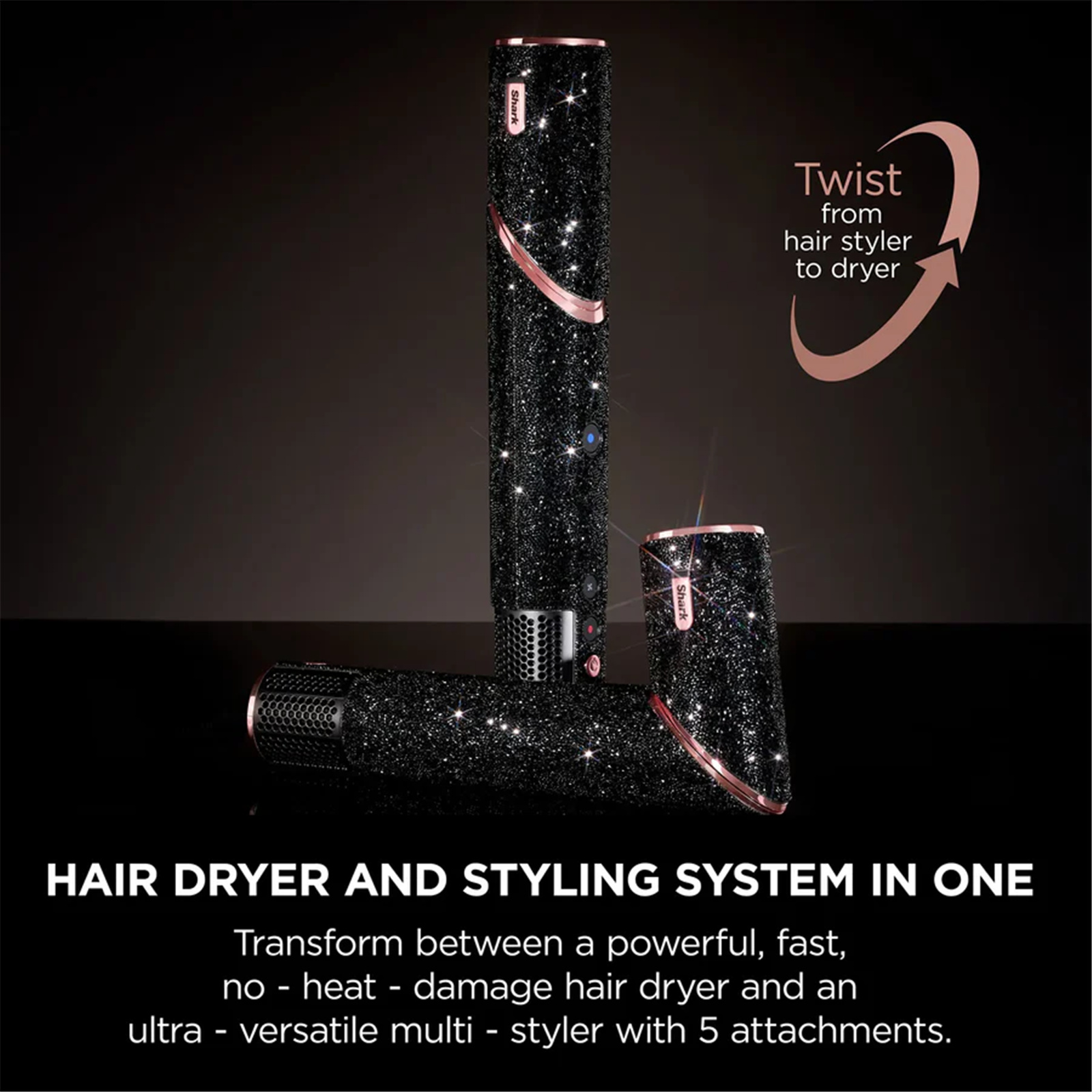 Twist to transform the powerful hair dryer to a versatile Air Styling System.