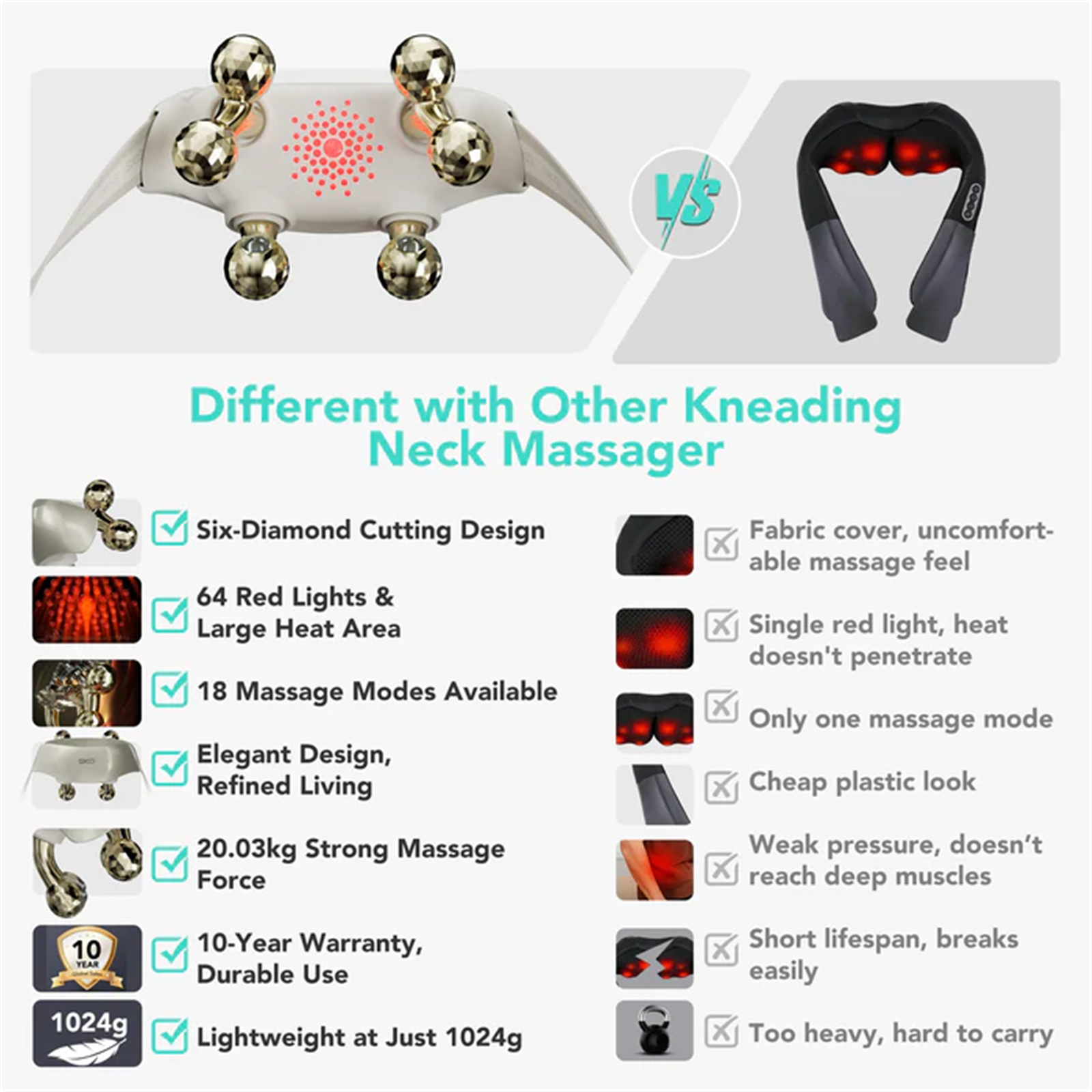 - ?Heat Therapy + Deep Kneading: Professional-grade warmth melts away stiffness while rhythmic kneading mimics expert hands for deep-tissue relief.