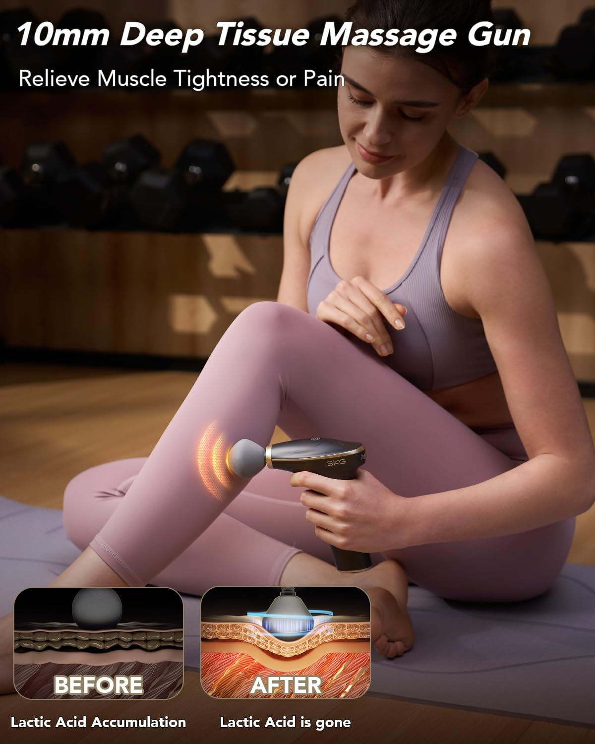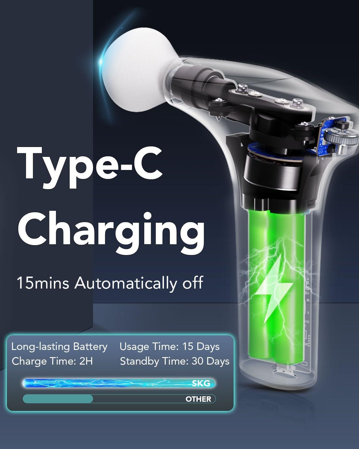 SKG Deep Tissue Massage Gun for pain relief, with 4 detachable heads