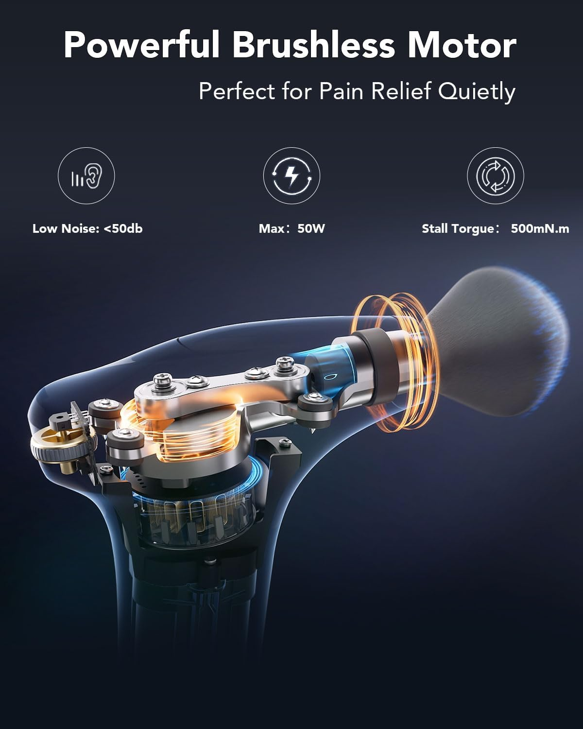 Operates 30% quieter than traditional massage guns, thanks to its premium brushless motor. Enjoy strong, deep-tissue percussion without disturbing others-ideal for home, gym, or office use.