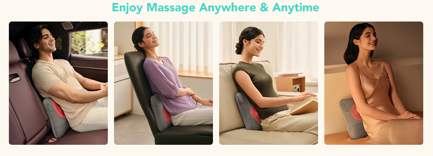 30-40 RPM programs with 360° ergonomic design target neck, shoulders, lumbar & thighs. Lay-flat bed therapy or upright office chair use - your cross-scene wellness companion.