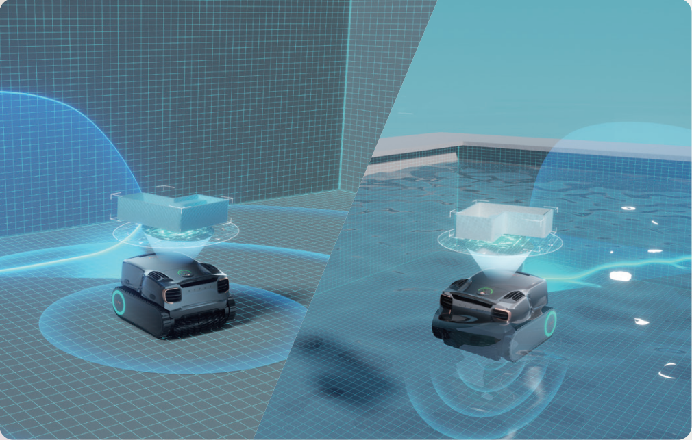 With 40 sensors and a quad-core processor, Scuba X1 Pro Max scans your pool, identifying not only floors and walls, but also complex areas, such as water surface, slopes, and elevated platforms, for customized cleaning tailored to your pool's unique design.