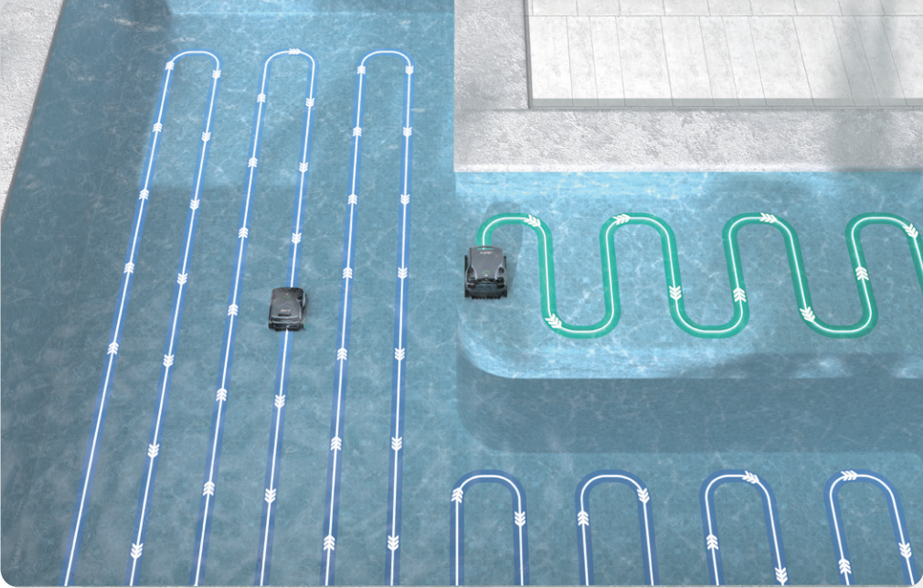 Based on the 3D map, FlexiPath 2.0 technology selects the optimal cleaning patterns for complex platforms and layouts, and guarantees 100% coverage, delivering spotless, thorough cleaning for all pools.