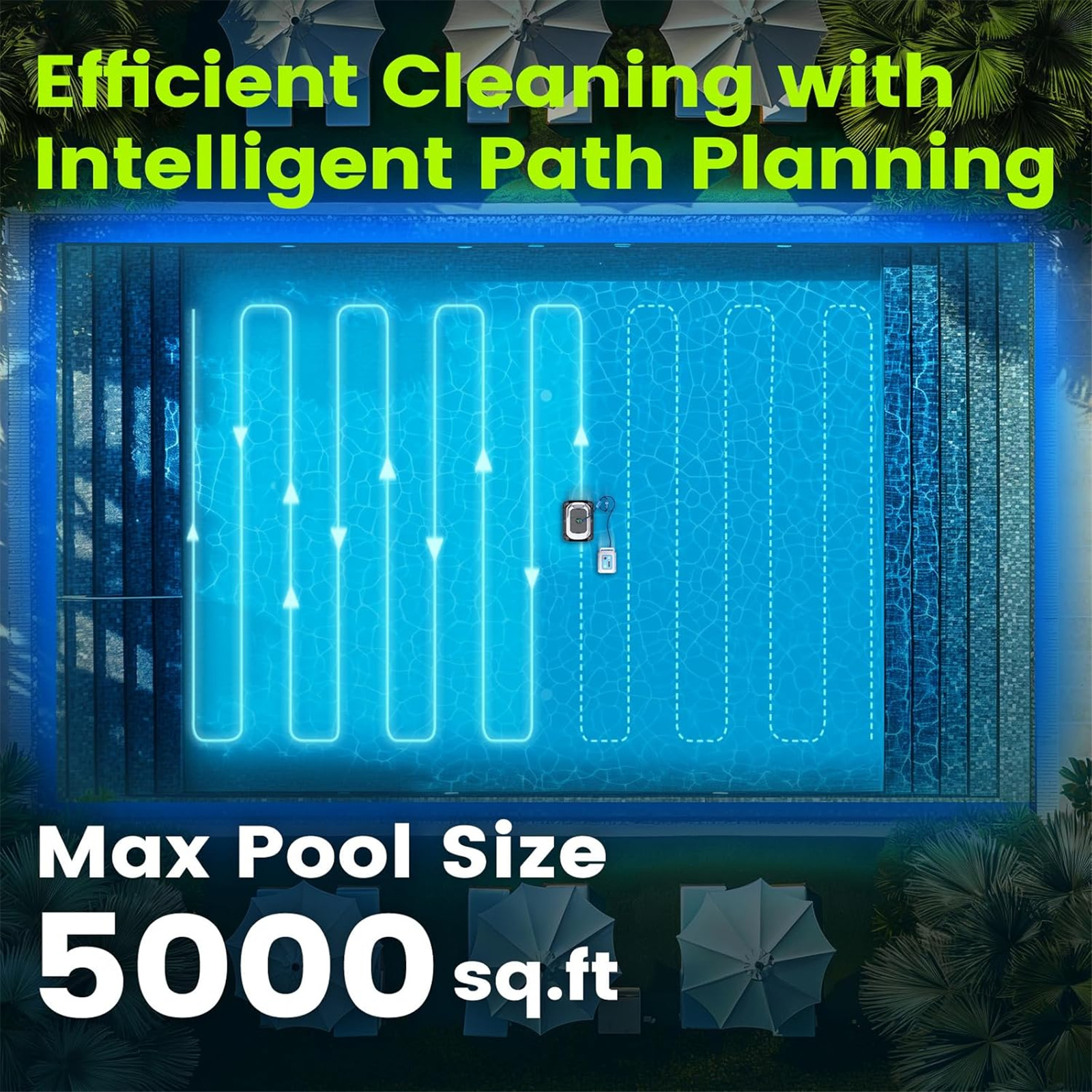 *All battery claims depend on pool shapes, surface conditions and many other factors; actual results will vary. Battery has limited recharge cycles and may eventually need to be replaced.*