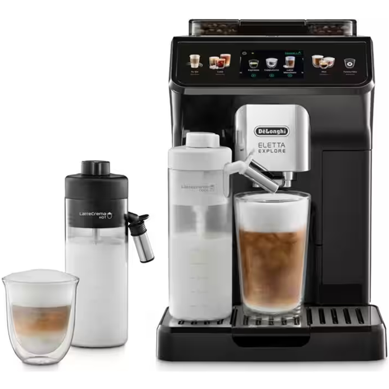 For iced milk-based coffee drinks, use the new LatteCrema Cool, the automatic frothing jug designed to create silky cold milk foam. Enjoy balanced and consistent traditional hot coffee recipes, thanks to the LatteCrema Hot frothing system. Eletta Explore is the first coffee machine in the market offering two dedicated milk texturing technologies.