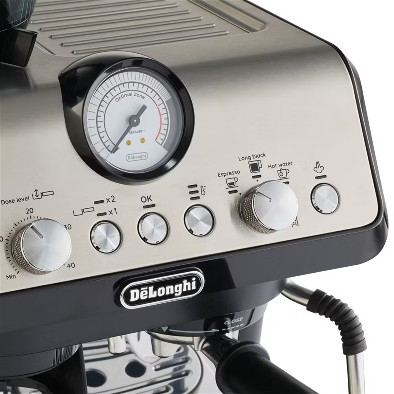 Delonghi De'Longhi Espresso and Cappuccino Maker with Grinder 3 Infusion coffee Tempreatures: 92, 94 or 96°C, Thermoblock Heating, 8 grinder Settings, 1.5L Water tank, 15 bar Pump