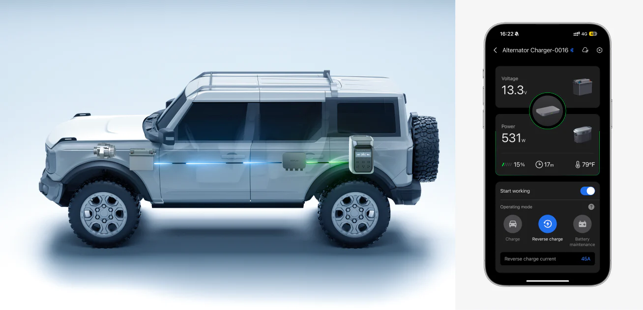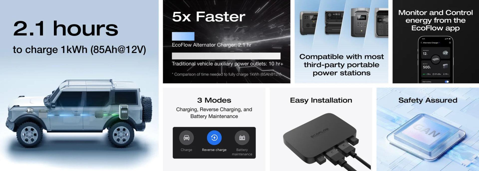 EcoFlow 500W Alternator Charger, charge while you drive, and stay powered up on the road.
