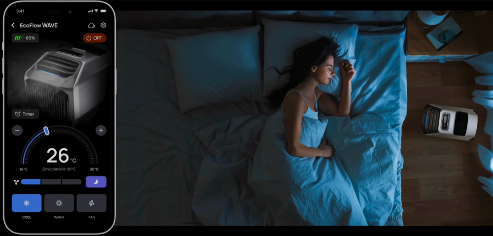 With EcoFlow's advanced software algorithm, the WAVE 2 offers multiple modes and app control, it runs quietly (44 dB) in Sleep Mode and up to 8 hours in Eco Mode. Experience longer-lasting comfort in your tent, RV, or home with its powerful and portable design.