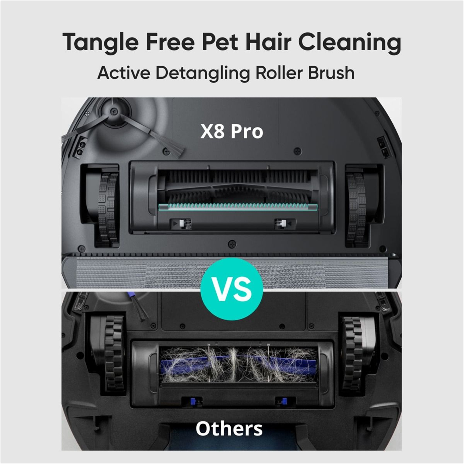 X8 Pro has a pet hair tangle rate of 0% so it's always ready for the next cleaning.