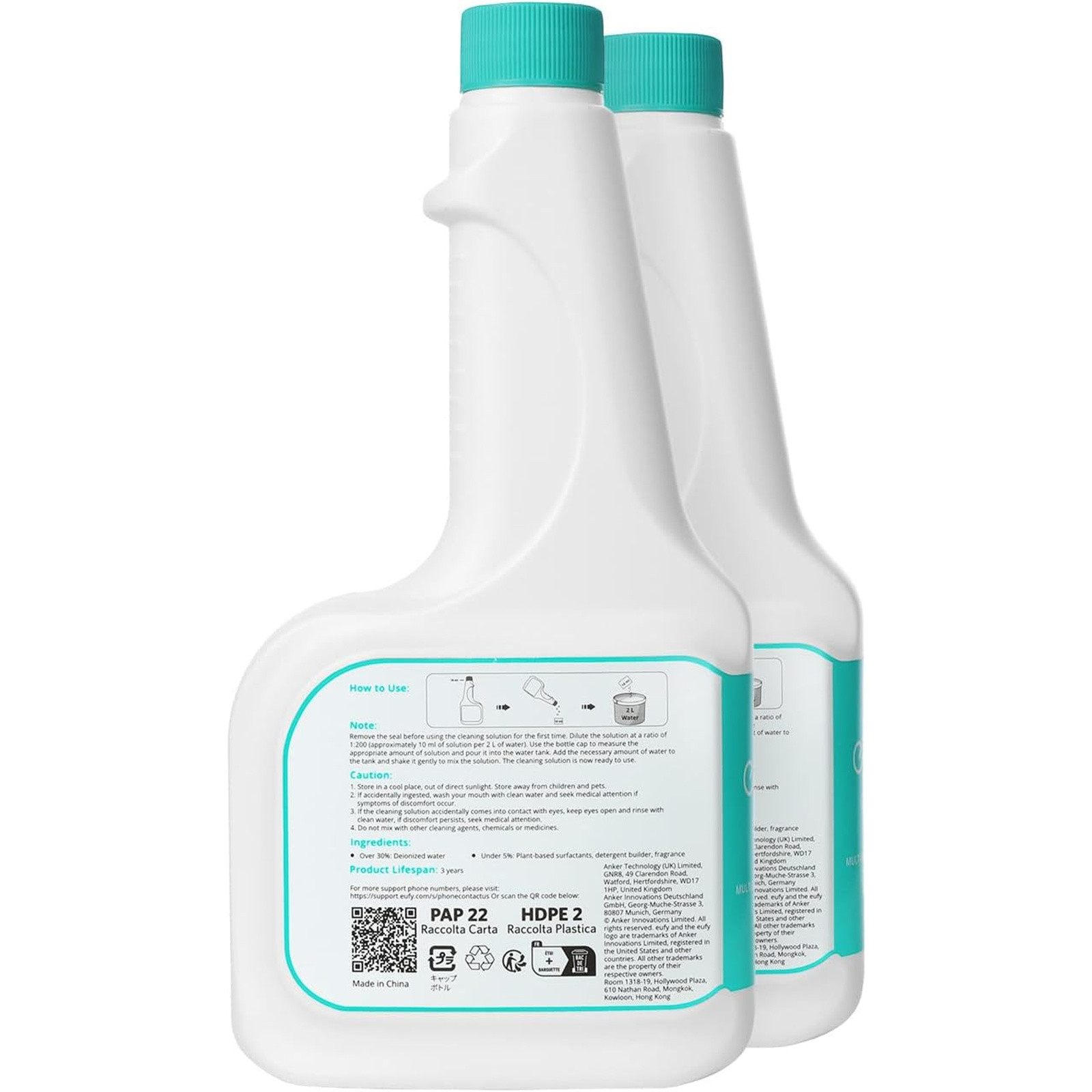 Eufy Robovac Cleaning Solution - 2 Bottles - 2x 473ml T29C3121 - Dilution Ratio 1:200 - Compatible with all Eufy RoboVacs that Support Mopping