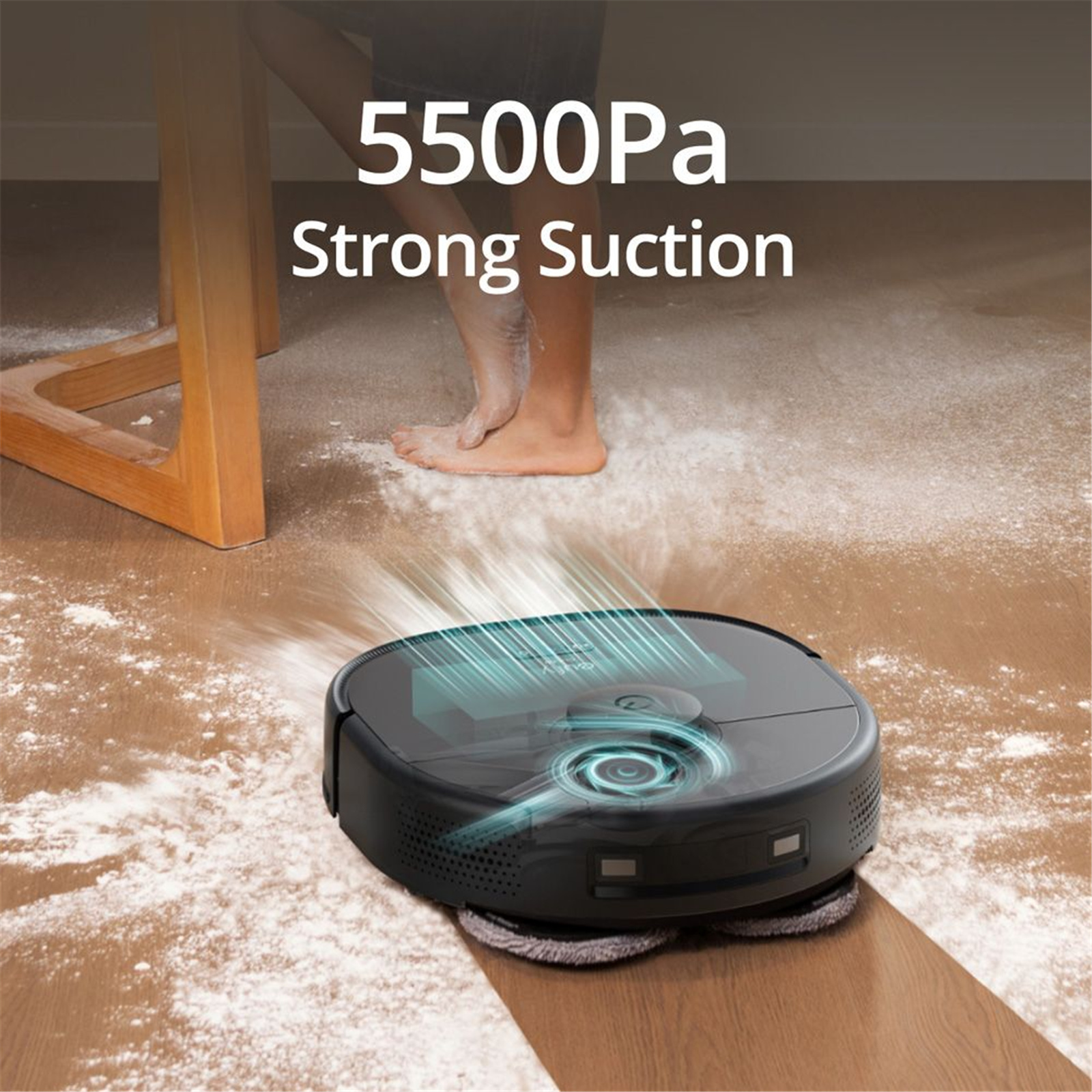 - 5,500Pa Strong Suction: The advanced vacuum system effortlessly picks up dirt, including pet fur, crumbs, dust, and mud, leaving your carpets and floors exceptionally clean after just one pass.