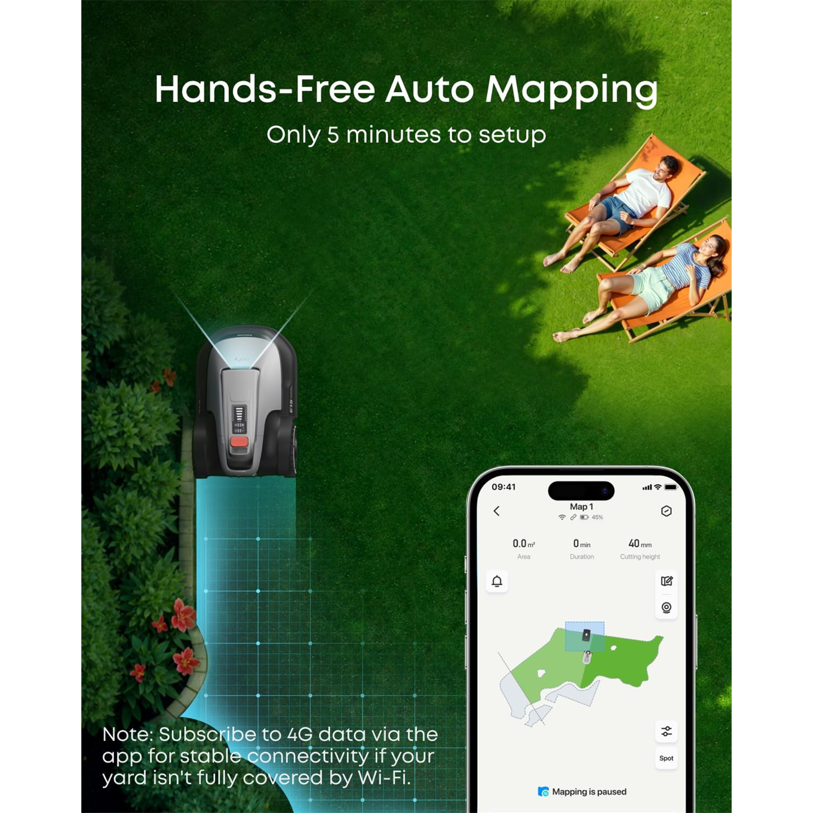 Hands Free Auto Mapping, Precise Obstacle Avoidance, Pure Vision FSD Technology, Multi Zone Management, No Signal Dropout, Ready to use, Max 5.9inc Edge Trimming, Choose your Cutting heigh